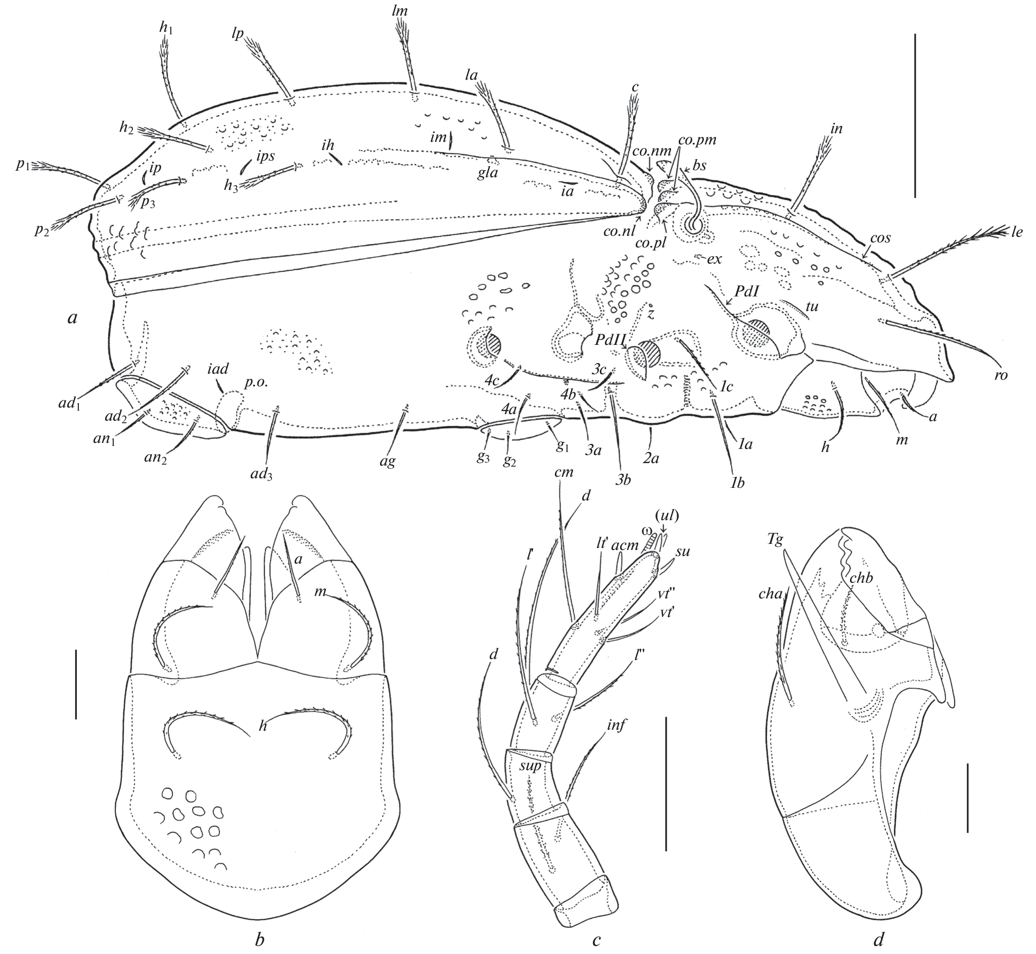- Norton R.A., 1977. A review of F. Grandjean’s system of leg chaetotaxy in the Oribatei (Acari) and its application to the family Damaeidae // In: Dindal D.L., editor. Biology of oribatid mites. Syracuse, SUNY College of Environmental Science and Forestry. P. 33–61.