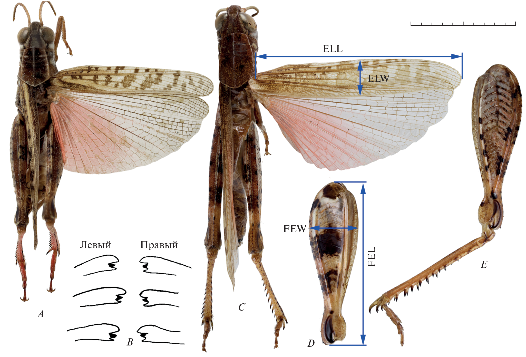 - Bai Y., Dong J.J., Guan D.L., Xie J.Y., Xu J.Y., 2016. Geographic variation in wing size and shape of the grasshopper Trilophidia annulata (Orthoptera: Oedipodidae): morphological trait variations follow an ecogeographical rule // Scientific reports. V. 6. № 1. P. 1–15.