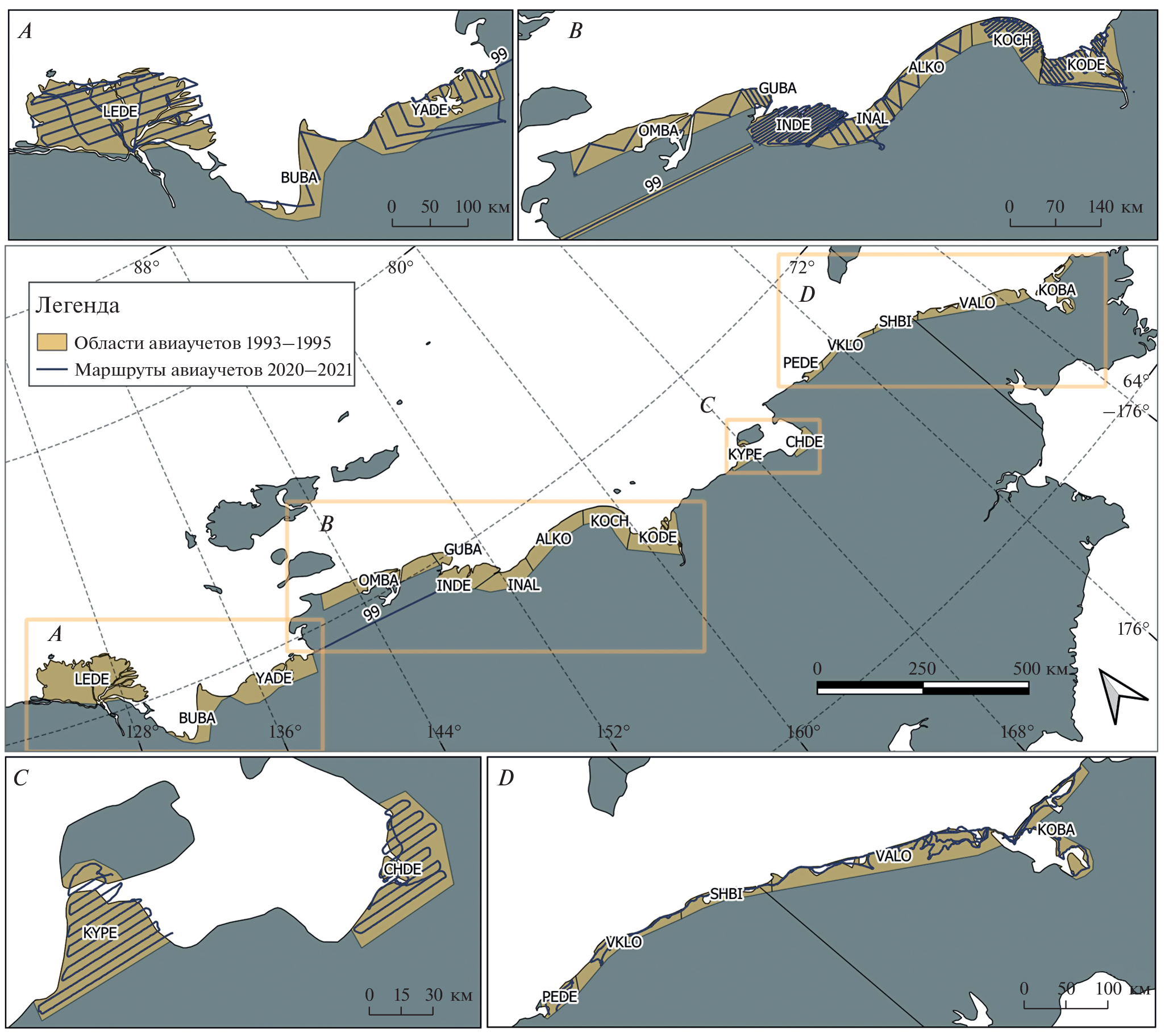 - Hodges J.I., Eldridge W.D., 2001. Aerial surveys of eiders and other waterbirds on the eastern Arctic coast of Russia // Wildfowl. V. 52. P. 127–42.