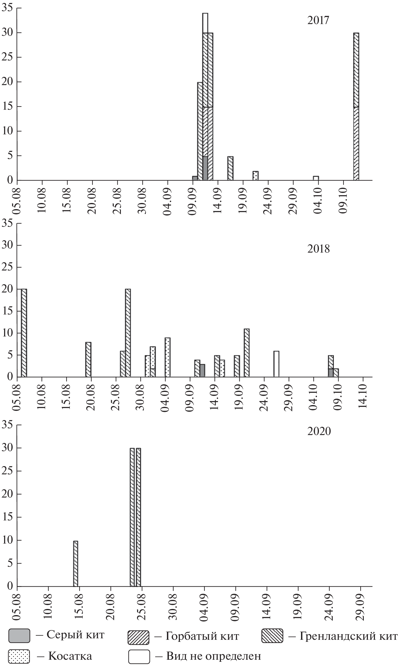 - Willoughby A.L., Stimmelmayr R., Brower A.A., Clarke J.T., Ferguson M.C., 2022. Gray whale (Eschrichtius robustus) and killer whale (Orcinus orca) co-occurrence in the eastern Chukchi Sea, 2009–2019: evidence from gray whale carcasses observed during aerial surveys // Polar Biology. V. 45. P. 737–748.