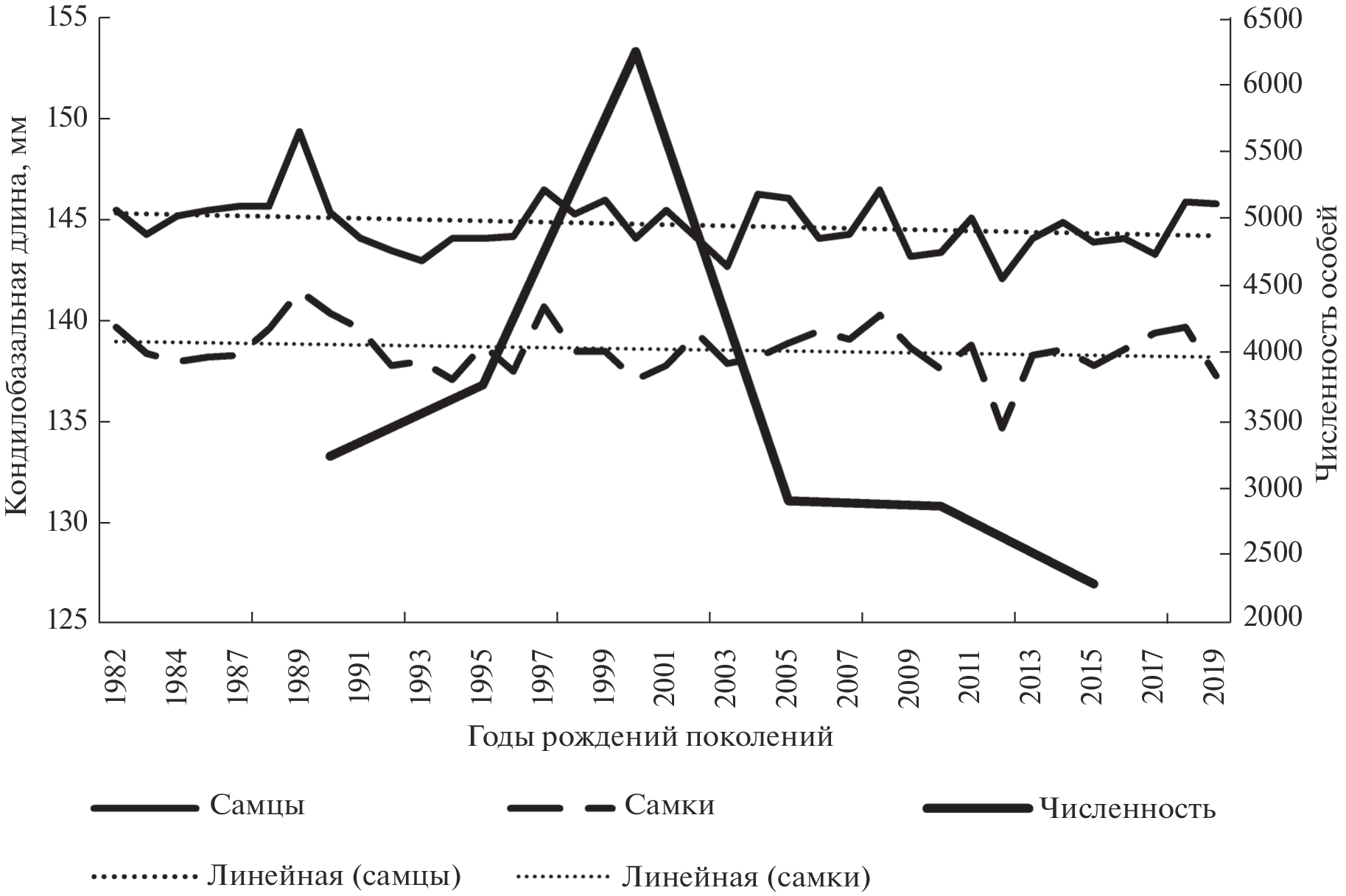 Установлены хронографические изменения некоторых краниологических промеров у крапчатого суслика, лисицы и волка в середине ХХ–начале ХХI столетий. Эти изменения представляют собой их временны́е отклонения от средних размеров в сторону увеличения. Через несколько поколений происходит возврат к исходным значениям. Размеры черепа крапчатого суслика и лисицы увеличиваются “скачкообразно” у особей одного поколения, а их возврат к исходным значениям происходит постепенно у особей нескольких следующих поколений. Хронографические изменения размеров черепа крапчатого суслика и лисицы коррелируют с изменениями показателей размножения и численности. Размеры черепа соответствуют определенным фазам численности. Увеличенные размеры черепа лисицы и волка наблюдаются на фазах выхода численности из депрессии и начала ее роста. Вероятной причиной хронографических изменений является соматический гетерозис, обусловленный в естественных условиях обитания чередованием преобладающих типов спаривания (аутбридинг и инбридинг). Они являются результатом массовых перегруппировок особей при глубоких сокращениях численности от природных или антропогенных воздействий.