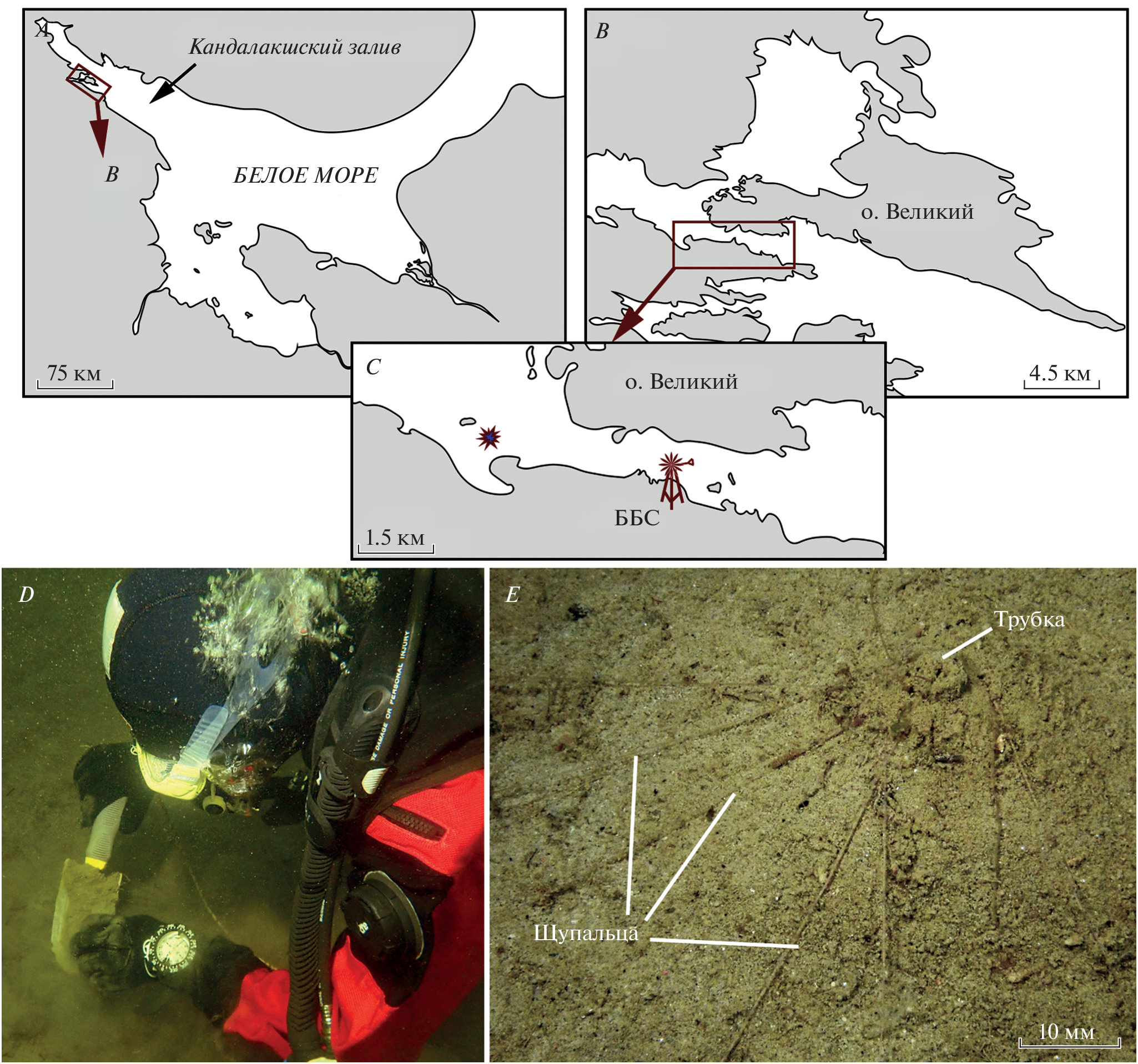 - Stolyarov A.P., 2019. Some Features of the species, spatial, and trophic structure of macrobenthos in the lagoon systems of the Ermolinskaya and Nikol’skaya inlets (Kandalaksha Bay, the White Sea) // Moscow University Biological Sciences Bulletin. V. 74. P. 176–182. https://doi.org/10.3103/S0096392519030106