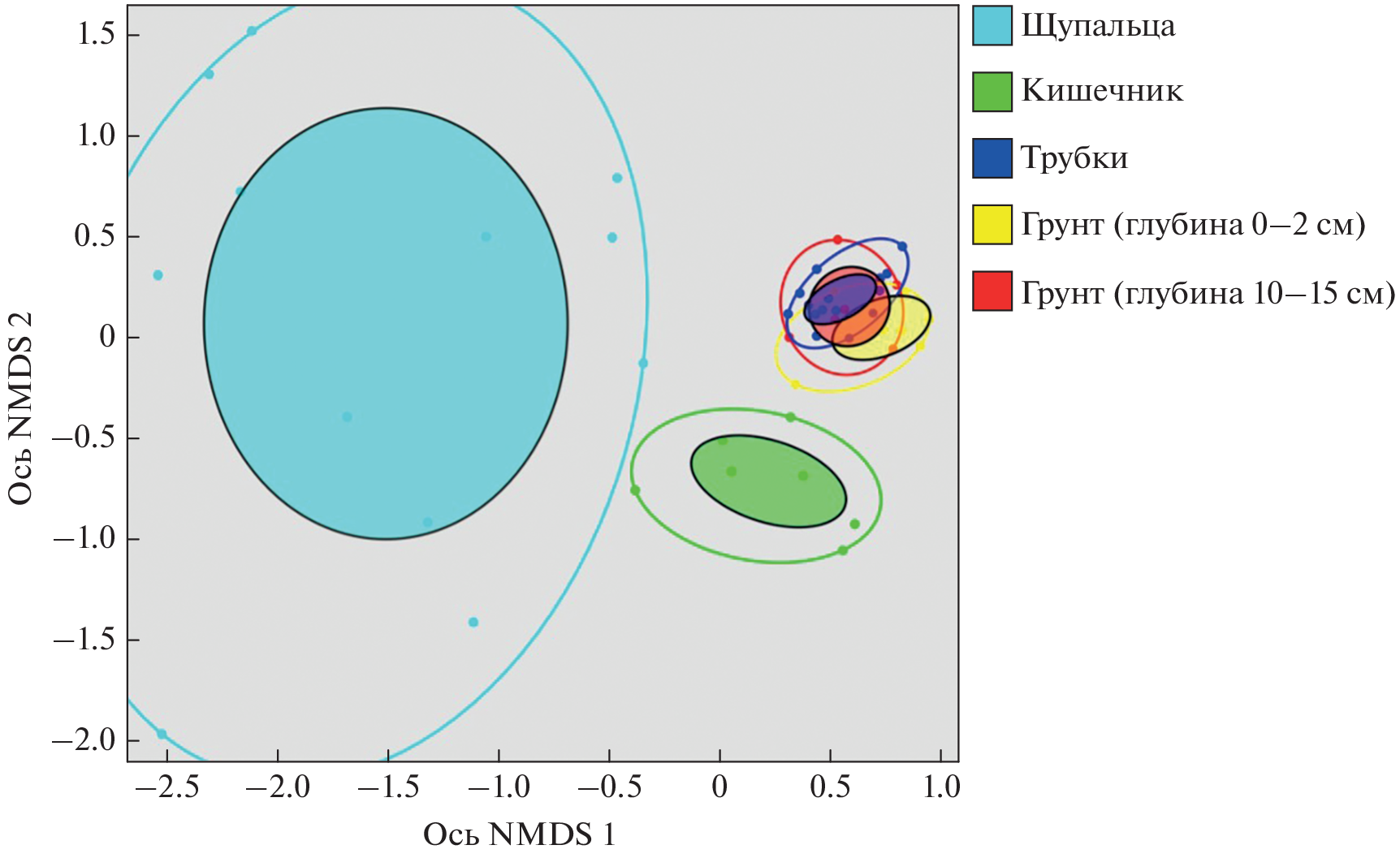 - Neave M.J., Streten-Joyce C., Glasby C.J., McGuinness K.A., Parry D.L., Gibb K.S., 2012. The bacterial community associated with the marine polychaete sp. 1 (Annelida: Opheliidae) is altered by copper and zinc contamination in sediments // Microbial ecology. V. 63. № 3. P. 639–650.