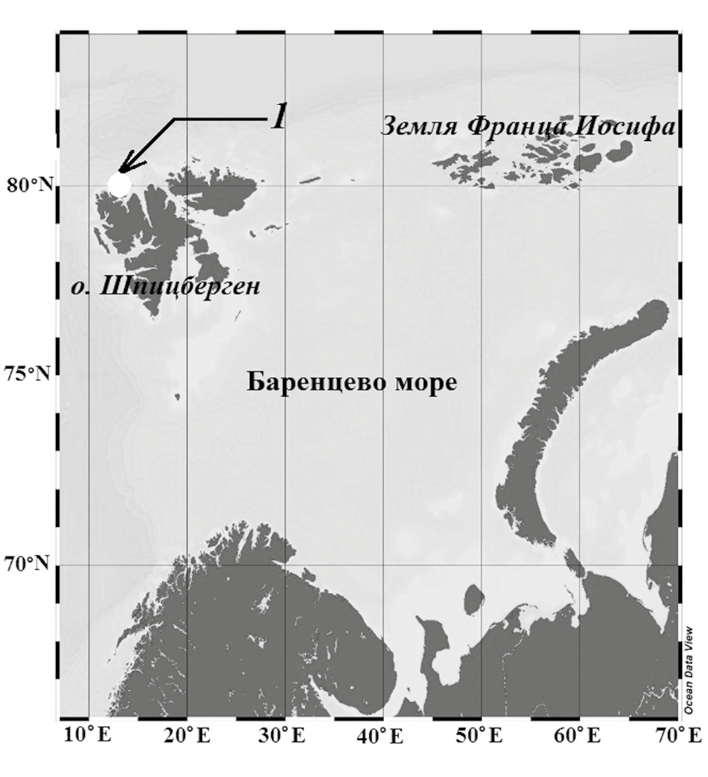 Рис. 2. Район исследований: 1 – место сбора проб Heliometra glacialis (Owen 1833 ex Leach MS).