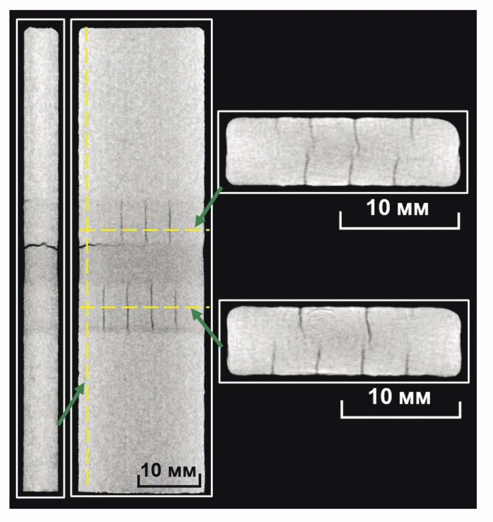 Для каждого образца получены 360 радиографических изображений при повороте от 0 до 180° с шагом 0,5°, время экспозиции — 240 с. Общее время эксперимента составило ≈24 ч.