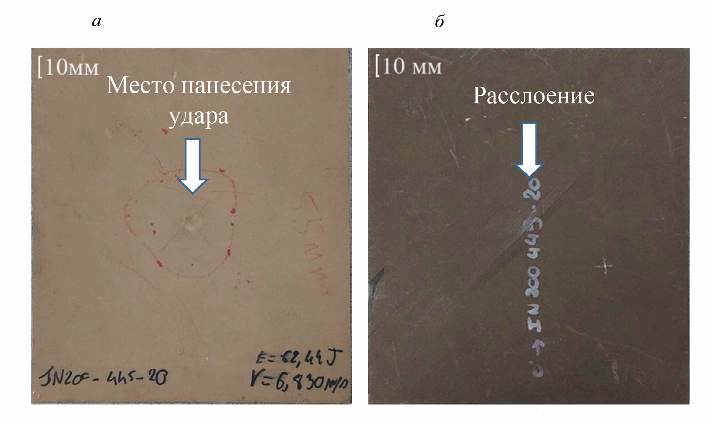 Рис. 1. Фотографии контрольного углепластикового образца с лицевой (а) и тыльной (б) сторон.
