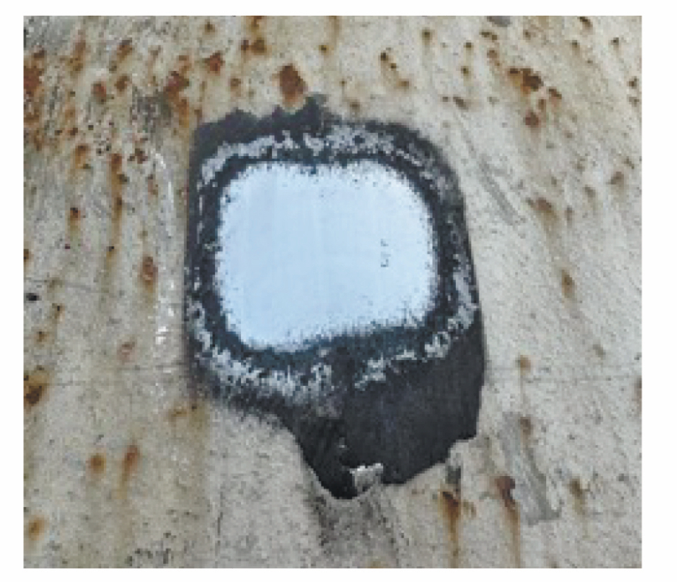 Рис. 3. Общий вид подготавливаемой площадки на поверхности трубы Ду 830 мм.