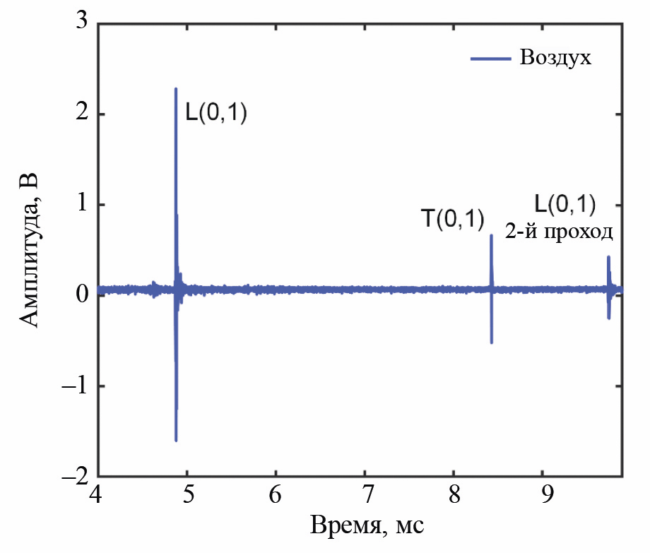 Рис. 4. Полученный сигнал А-скана (волновод в воздушной среде)