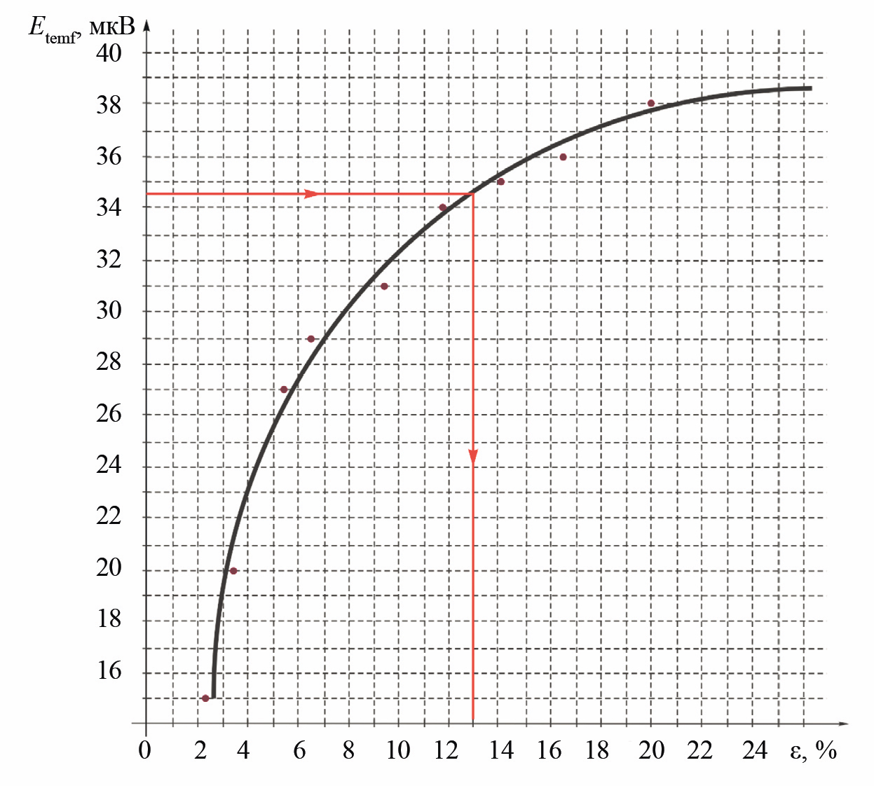 Основываясь на полученной зависимости, авторы показали, что при величине термоЭДС 34,5 мкВ относительная деформация образца, изготовленного из нержавеющей стали X5CrNi1810, составит 11,9 %.