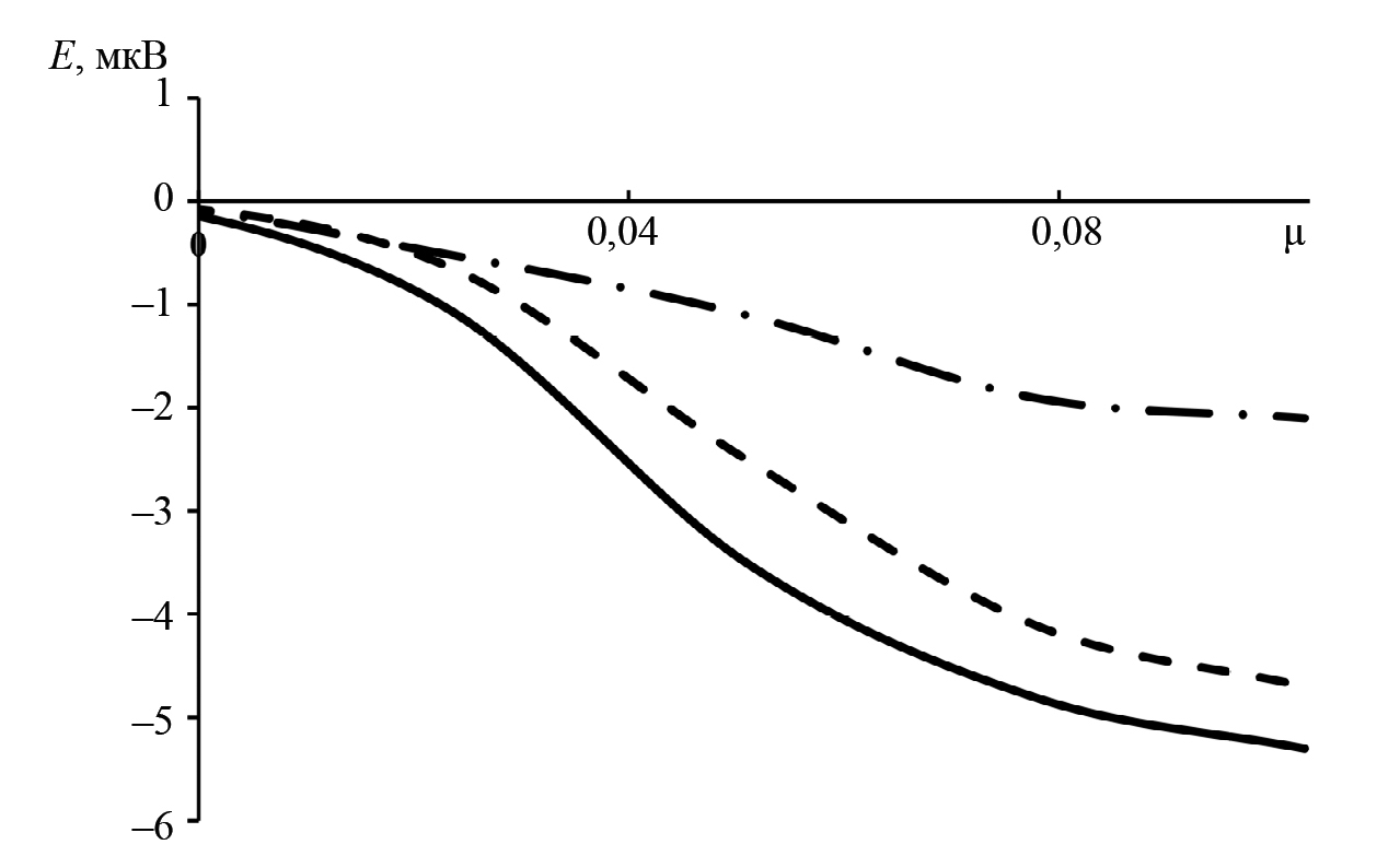 Из рис. 10 видно, что при небольших значениях относительного удлинения образцов µ<0,02, что соответствует области упругой деформации, изменение термоЭДС незначительно. С увеличением относительного удлинения µ>0,02, что соответствует области пластической деформации, изменение термоЭДС увеличивается. Максимальное изменение термоЭДС наблюдается при максимальном значении деформации перед разрушением образца.