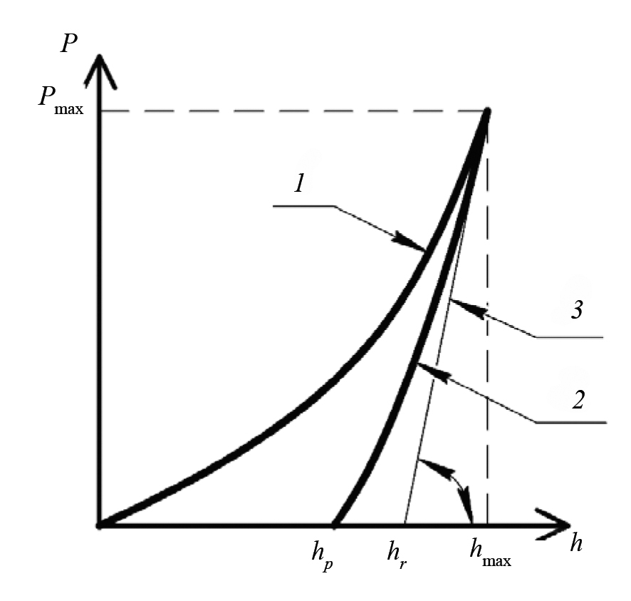 В табл. 1 представлены следующие переменные: ε — поправочный коэффициент для различных инденторов; he — упругая составляющая глубины вдавливания индентора, мм; νs — коэффициент Пуассона материала испытуемого образца; νi — коэффициент Пуассона материала индентора; Ei — модуль упругости материала индентора, Н/мм2.