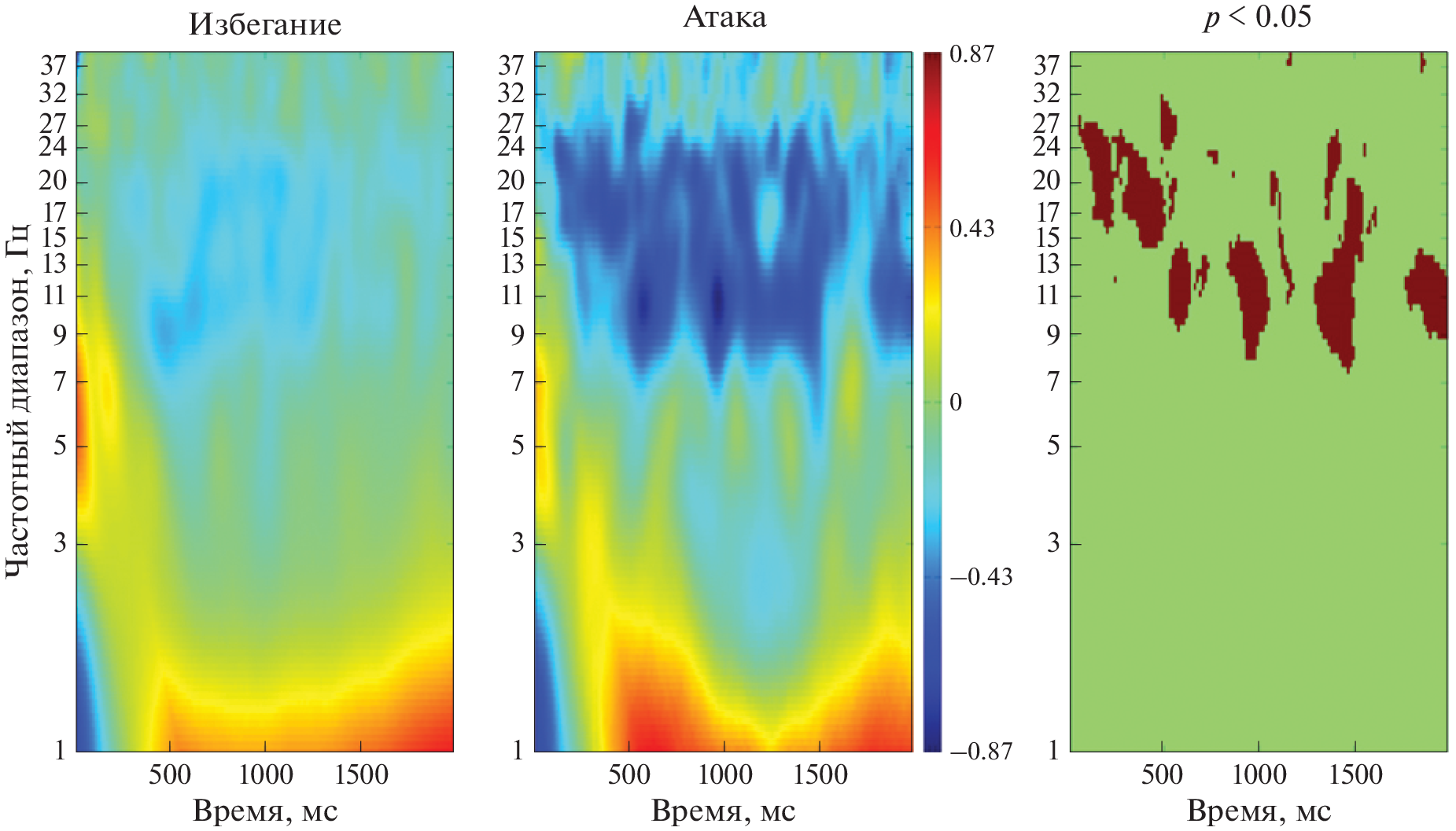 The aim was to study the oscillatory dynamics accompanying the processes of interaction with the virtual character and the localization of the revealed effects. 42 subjects (of which 25 are women) aged 18 to 41 years took part in the study. During the EEG recording, the subjects had to interact with the virtual character by choosing one of three options (“offer friendship”, “attack” or “avoid contact”). Faces with 5 types of emotional expressions (angry, happy, frightened, sad and neutral) were used. An analysis of equivalent dipoles revealed that the choice of active interaction (to attack or offer friendship), compared with the avoidance of interaction, was accompanied by a large decrease in α- and β-rhythms, which may be associated with the processes of understanding the virtual character’s intentions. The choice of friendship versus avoidance of interaction was accompanied by an increase in δ-rhythm, which may indicate the presence of a motivational component. The revealed effects were found in clusters of equivalent dipoles, the localization of which coincides with the structures of the mentalization network and the network of mirror neurons involved in the processes of people’s intent assessment.