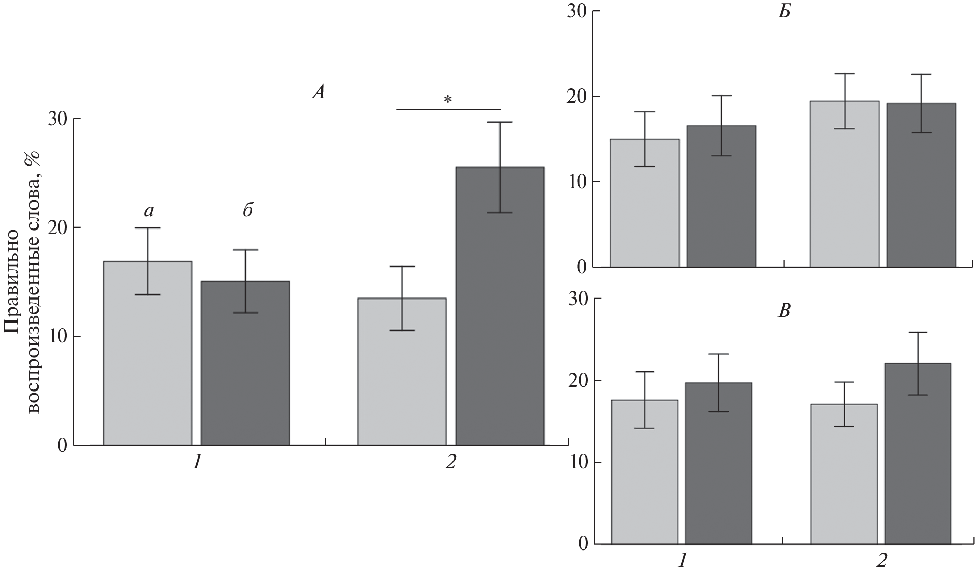 Моторная кора головного мозга (ГМ) человека задействуется на различных этапах речевого научения в том случае, если оно происходит одновременно с совершением двигательной активности. Однако в исследованиях, направленных на поиск причинно-следственных связей между активацией первичной моторной коры (М1) и эффективностью выполнения речевых задач, обнаруживаются противоречивые результаты, что, возможно, обусловлено различиями в средах обучения и характере двигательной активности, задействованной в экспериментальной процедуре. Целью данной работы стало исследование влияния активности моторной коры на эффективность запоминания новых слов при варьировании условий обучения и способа совершения моторного ответа. Активность моторной коры модулировалась при помощи ритмической транскраниальной магнитной стимуляции (рТМС) ГМ. После рТМС зоны М1 либо применения контрольных условий (плацебо-ТМС, активный контроль) участники исследования (n = 96) выполняли задания на усвоение новых слов посредством установления ассоциаций между визуально представленными изображениями предметов и аудиально предложенными словоформами в двух обучающих средах: при помощи компьютерного монитора либо в интерфейсе виртуальной реальности. В каждом условии испытуемым предъявлялись восемь новых слов с семантической привязкой и вопросом о визуальных характеристиках стимулов. Ответы на обучающие задания участники давали посредством выполнения дистальных высокоамплитудных движений рукой или проксимальных низкоамплитудных движений пальцами кисти. В качестве показателя эффективности усвоения новых слов использовалась правильность воспроизведения изученных слов сразу после обучения и на следующий день. В обеих средах обучения были обнаружены значимые различия в успешности воспроизведения новых слов сразу после стимуляции и на следующий день для испытуемых, получивших рТМС зоны М1 первичной моторной коры, в тех случаях, когда они давали ответы посредством совершения низкоамплитудных движений пальцами. Полученные результаты позволяют сделать вывод об участии моторной коры в речевом научении при интерактивном взаимодействии субъекта с обучающим материалом.