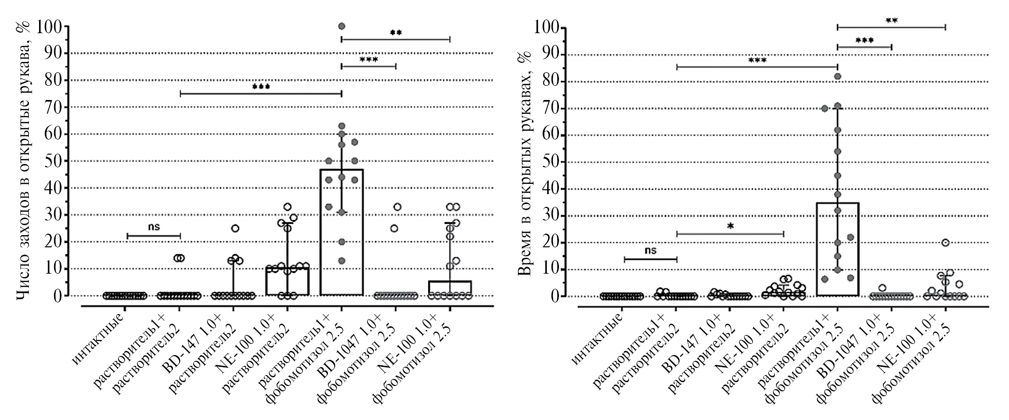 В прямом эксперименте в тестах, моделирующих эмоционально-стрессовое воздействие, доказано, что анксиолитические свойства афобазола зависят от шаперона Sigma1R, поскольку его селективные антагонисты устраняли данный эффект препарата (рис. 1 [5]).
