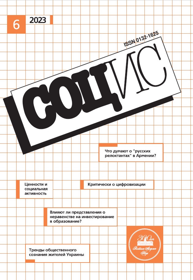 Изложены результаты исследования роли ценностей в детерминации различных типов внеассоциативного социального участия на основе онлайн-выборки респондентов (N = 3711). Рассматриваются два вида практик – утилитарные, направленные на достижение целей локальных сообществ и специфических групп, и социотропические – ориентированные на реализацию интересов широкого круга лиц. Создана типология социального участия, включающая три класса («пассивный», «преимущественно утилитарный», «универсальный»), которая затем использовалась в качестве зависимой переменной в мультиномиальных регрессиях. Результаты анализа показали, что ценности, измеренные по методике Ш. Шварца, оказывают значимое влияние на участие в инициативах на благо общества в целом или его отдельных групп, а их эффект чаще всего превышает эффекты других факторов, включая доверие, идентичность, удовлетворенность жизнью, религиозность и социально-демографические характеристики. При этом активисты с преимущественно утилитарной позицией отличаются большей выраженностью ценностей «Самовыражения», а у представителей смешанного универсального типа, чья активность не ограничивается помощью только узкому кругу лиц, в приоритете ценности из группы «Забота о людях и природе».