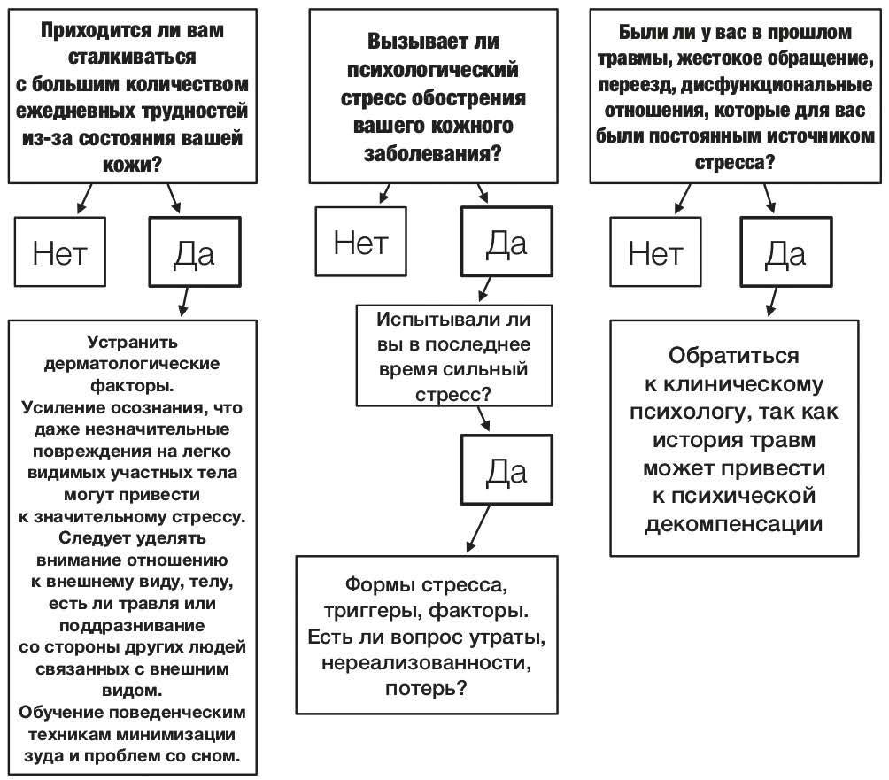 Рис. 4. Психологический подход к оценке и начальному лечению психосоциальных стрессоров у пациентов в дерматологической практике