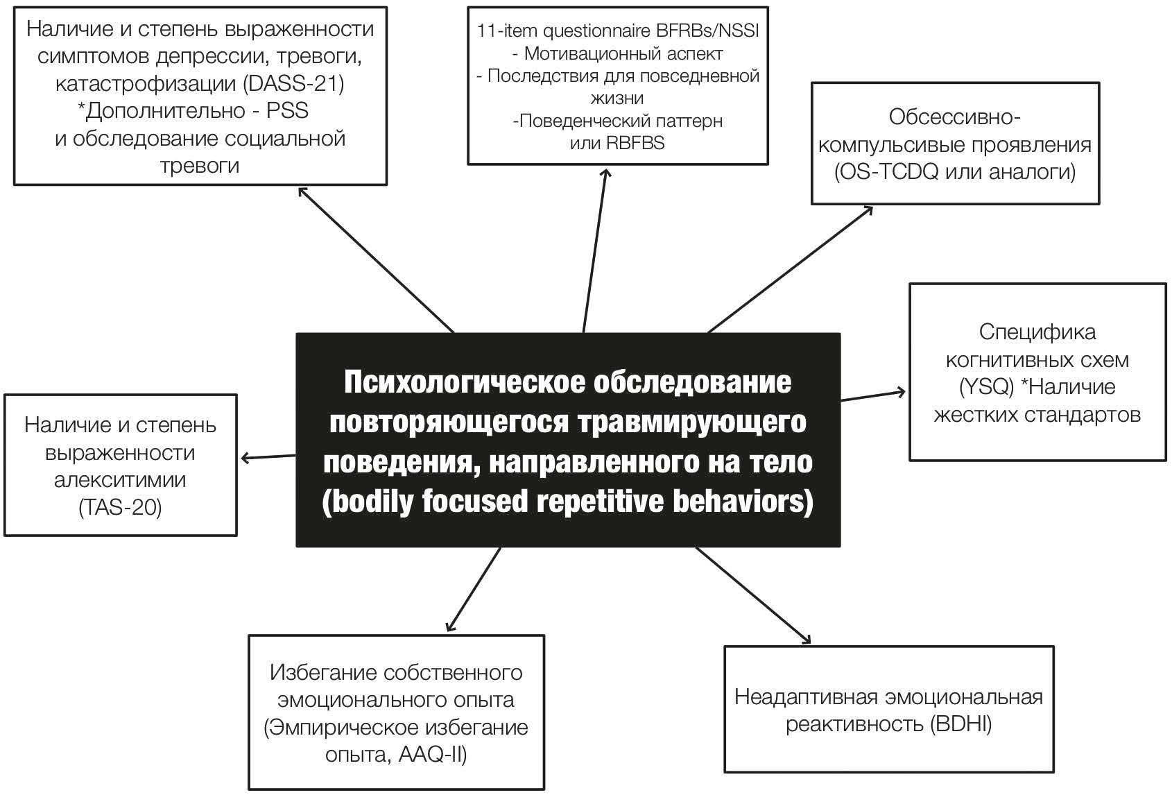 Рис. 5. Специфика психологического обследования пациента с повторяющимся травмирующим поведением, направленным на тело