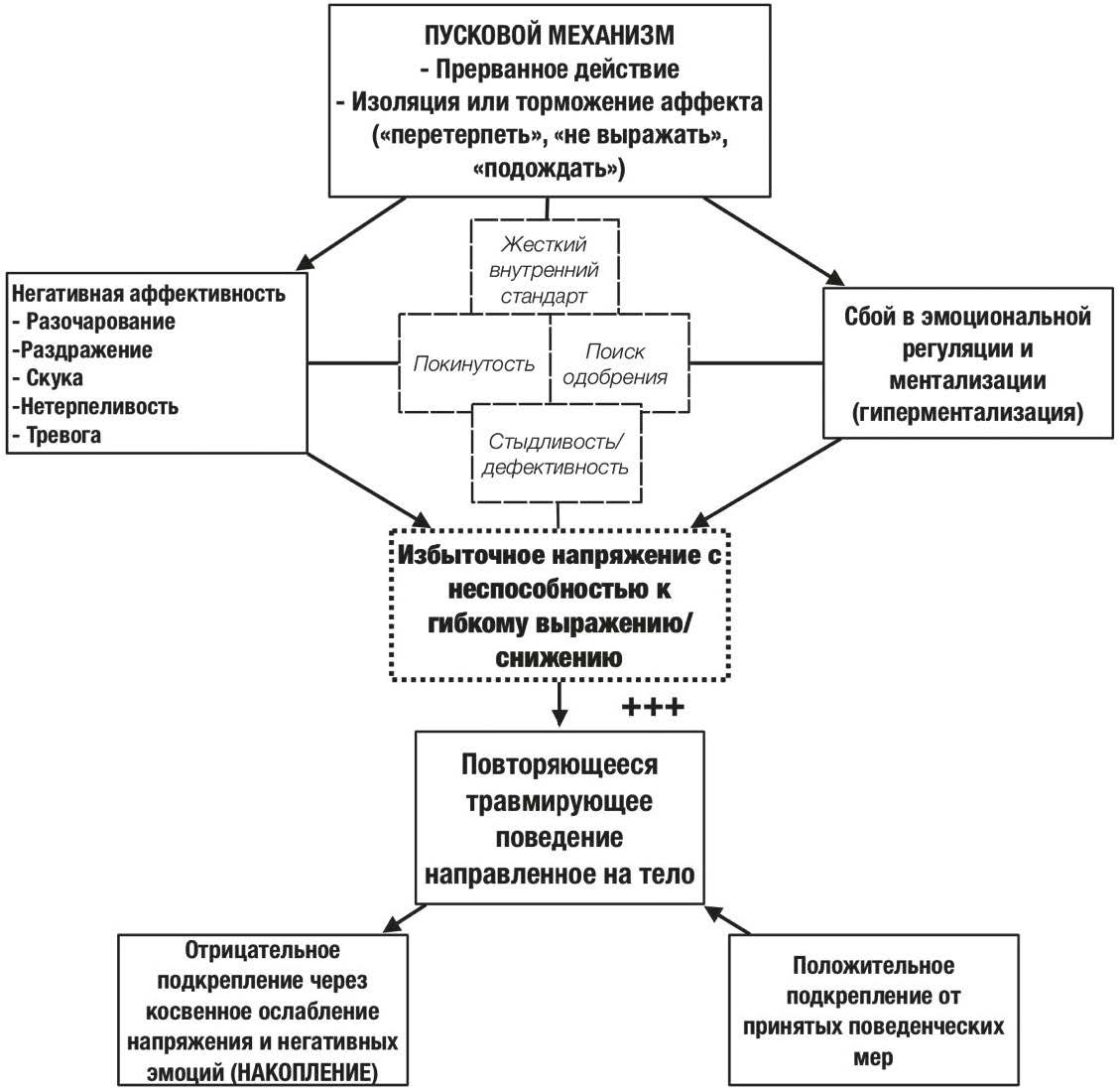 1 Примечание. В кавычках приведены примеры высказываний о собственном состоянии пациентов с повторяющимся травмирующим поведением, направленным (сфокусированным) на тело (body-focused repetitive behaviors), или расстройством травмирования кожи.