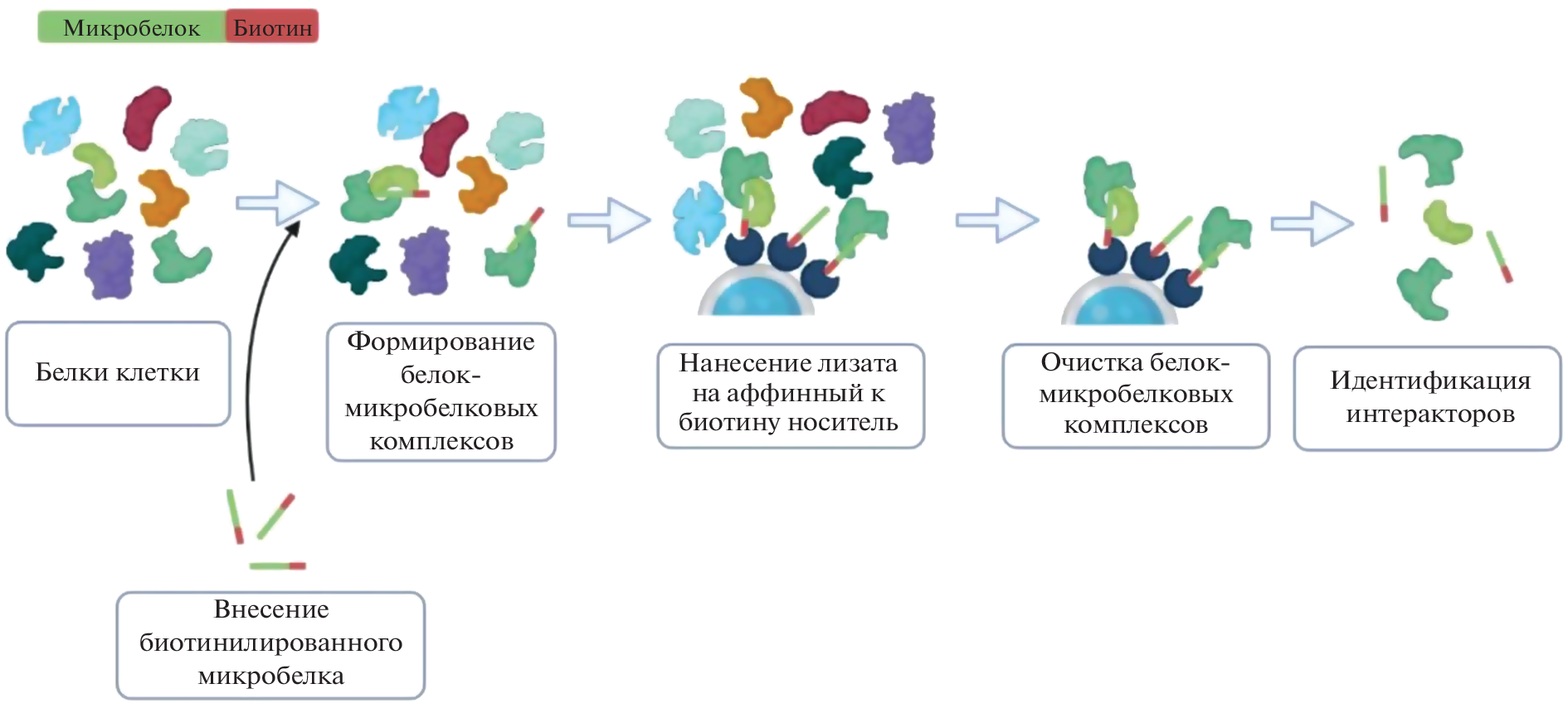 Recent studies have shown that small open reading frames (sORFs, <100 codons) can encode peptides or microproteins that perform important functions in prokaryotic and eukaryotic cells. It has been established that sORF translation products are involved in the regulation of many processes, for example, they modulate the activity of the mitochondrial respiratory chain or the functions of muscle cells in mammals. However, the identification and subsequent functional analysis of peptides or microproteins encoded by sORFs is a non-trivial task and requires the use of special approaches. One of the critical steps in functional analysis is identification of protein partners of the peptide under study. This review considers the features of the interactome analysis of short protein molecules and describes the approaches currently used for studies in the field.