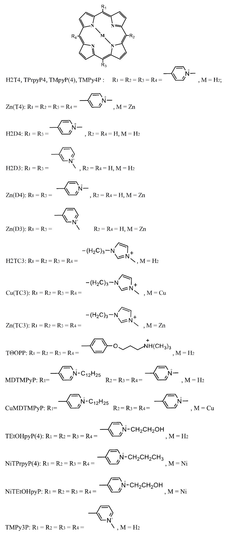 Рис. 5. Структурные формулы тетра- и дикатионных порфиринов/металлопорфиринов.