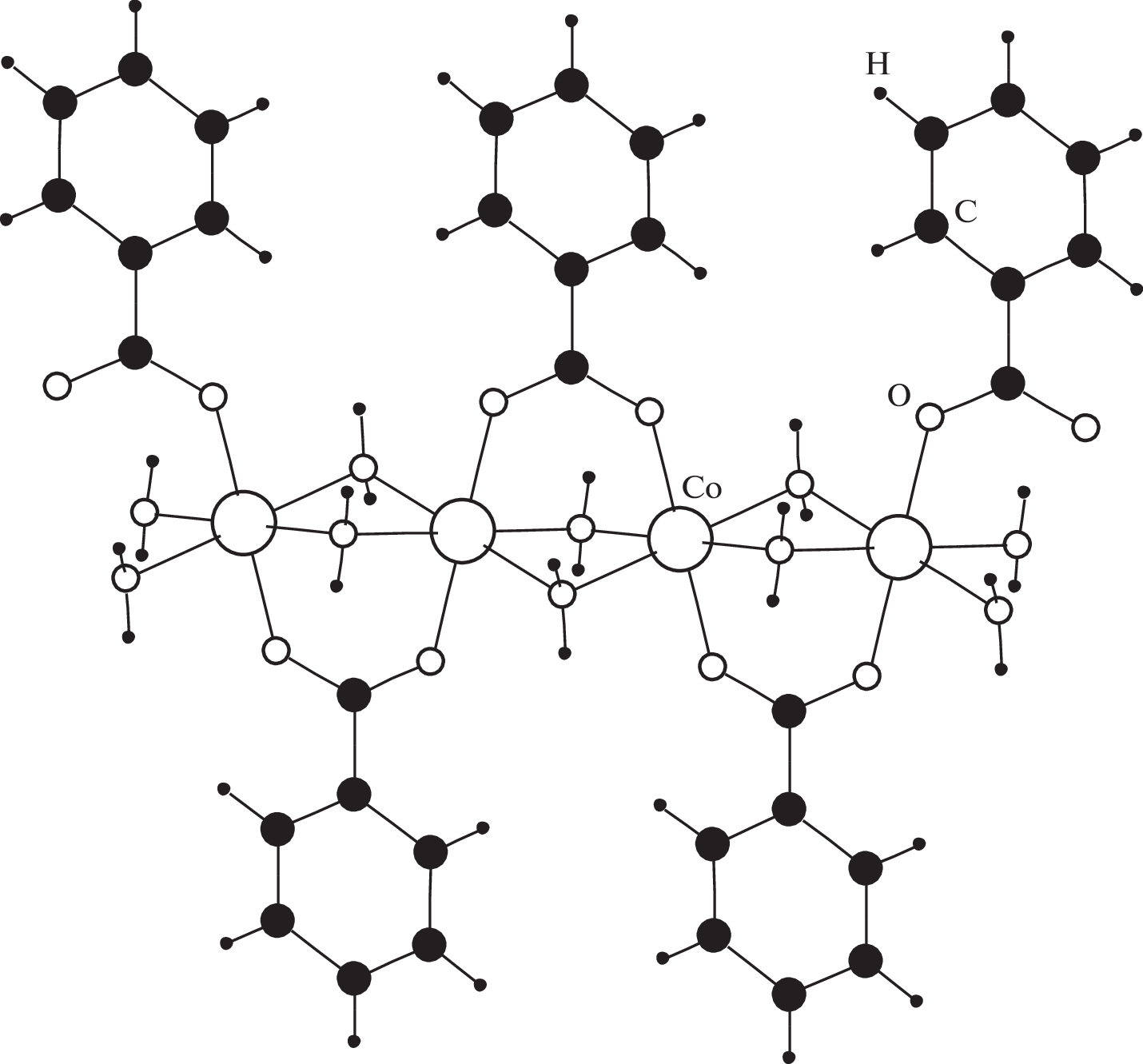 A crystal chemical analysis of the 3d-metal benzoate- and phenylacetate-containing compounds is carried out in terms of the stereoatomic crystal structure model using characteristics of the Voronoi–Dirichlet polyhedra. Coordination types of benzoate and phenylacetate anions toward the transition metals from Ti to Zn are considered. The influence of the coordination type on the characteristics of M–O bonds in the crystal structures is revealed. The electron-donating ability of benzoate and phenylacetate anions toward 3d metals is quantitatively estimated using the 18-electron rule.