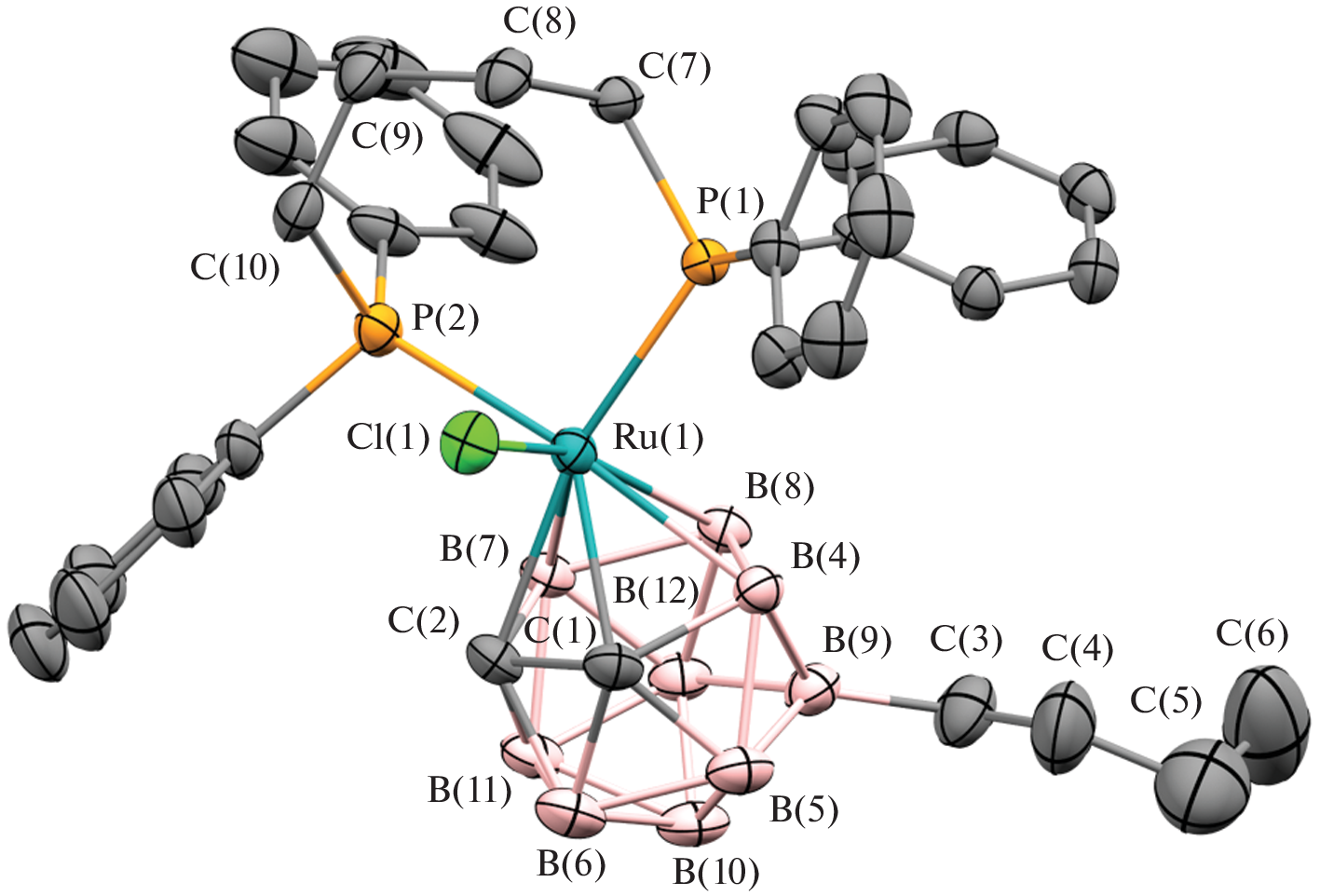 The reaction of 9-iodo-ortho-carborane with n-butylmagnesium bromide affords 9-n-butyl-ortho-carborane. The reaction of the latter with alkali in boiling ethanol gives new nido-carborane [5-Bu-7,8-C2B9H11]– (I) containing the n-butyl substituent at the lower rim of the basket. The reaction of compound I with RuCl2(PPh3)(Ph2P(CH2)4PPh2) results in the formation of the corresponding ruthenium(IV) closo complex 3,3-(Ph2P(CH2)4PPh2)-3-H-3-Cl-9-Bu-closo-3,1,2-RuC2B9H10 (II) characterized by 2D NMR spectroscopy. On heating compound II can react with carbon tetrachloride to form the 17-electron complex 3,3-(Ph2P(CH2)4PPh2)-3-Cl-9-Bu-closo-3,1,2-RuC2B9H10 (III). The structure of complex III is solved by X-ray diffraction (XRD) (CIF file CCDC no. 2180761). The electrochemical studies show that complex III undergoes the reversible transition Ru(II) → Ru(III) similarly to the earlier studied ruthenacarboranes.