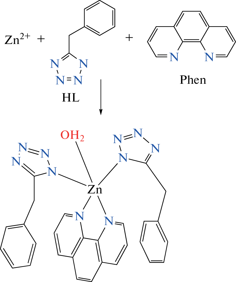 Синтезирован комплекс [Zn(Phen)(H2O)L2] (I), где HL – 5-бензилтетразол, Phen – 1,10-фенантролин. Соединение охарактеризовано стандартными физико-химическими методами анализа (элементный и рентгенофазовый анализ, ИК-спектроскопия). Методом рентгеноструктурного анализа (CCDC № 2220597) установлено, что в кристаллической структуре I координационное окружение цинка соответствует искаженной тригональной бипирамиде. Лиганд HL является монодентатным и координируется атомом азота тетразолатного цикла. Методом ЯМР изучена стабильность комплекса I в ДМСО. На клеточных линиях HepG-2 (клетки гепатоцеллюлярной карциномы) и MRC-5 (нераковые клетки – фибробласты человека) исследованы цитотоксические свойства полученного соединения. Показано, что комплекс I проявляет слабовыраженные цитотоксические свойства в исследованном диапазоне концентраций (1–100 мкМ).