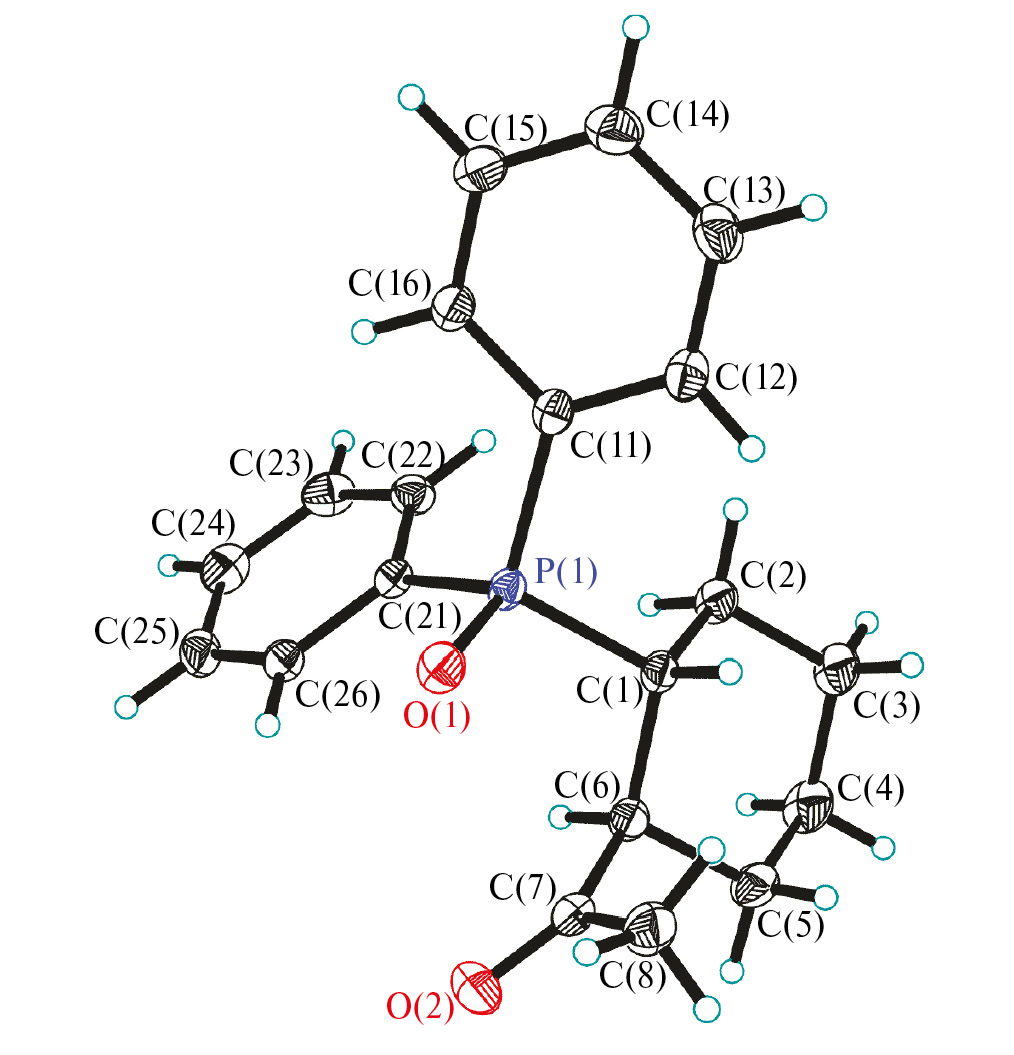 РСА соединения L выполнен на автоматическом дифрактометре Bruker D8 Venture при температуре 220 K (MoKa-излучение, l = 0.71073 Å, графитовый монохроматор). Кристаллы L (C20H23O2P, M = 326.35) моноклинные, пр. гр. Р21/n, a = 12.4626(3), b = 9.1152(2), c = 15.6019(4) Å, b = 96.854(1)º, V = 1759.70(7) Å3, Z = 4, ρ(выч.) = 1.232 г/см3, µ(MoKα) = 0.164 мм-1, F(000) = 696. Интенсивности 19 066 отражений (из них 3842 независимых, Rint = 0.0281) измерены методом ω-сканирования в интервале 1.98° < θ < 27.00° (–14 ≤ h ≤ 15, –11 ≤ k ≤ 11, –19 ≤ l ≤ 19). Адсорбционная коррекция введена на основании измерений интенсивностей эквивалентных отражений [11]. Структура расшифрована прямым методом; все неводородные атомы уточнены полноматричным анизотропным МНК по F2 (SHELXTL [12]). Все атомы водорода найдены из разностного синтеза Фурье и уточнены изотропно. Окончательное значение факторов расходимости составило R1 = 0.0362 для 3247 отражений с I > 2σ(I) и wR2 = 0.0968 по всему массиву данных с использованием 300 параметров уточнения. GOОF = 1.028, ∆ρ(min/max) = –0.360/0.365, e/Å3.