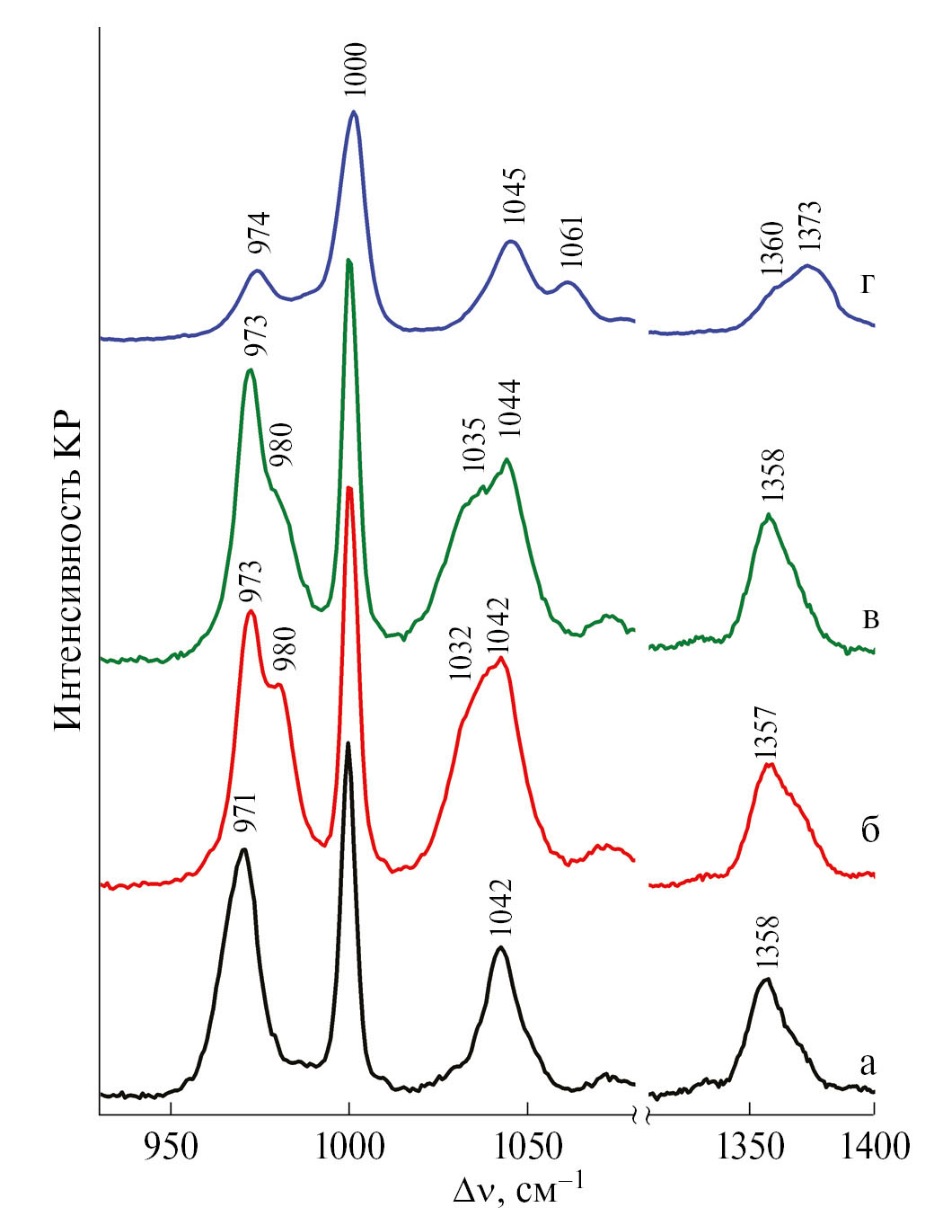 Спектры КР в области 3500—100 см–1 зарегистрированы на спектрометре Jobin-Yvon LabRAM 300, снабженном микроскопом и лазерным ССD-детектором. В качестве возбуждающей линии использована линия He—Ne-лазера с длиной волны 632.8 нм и мощностью не более 2 мВт.