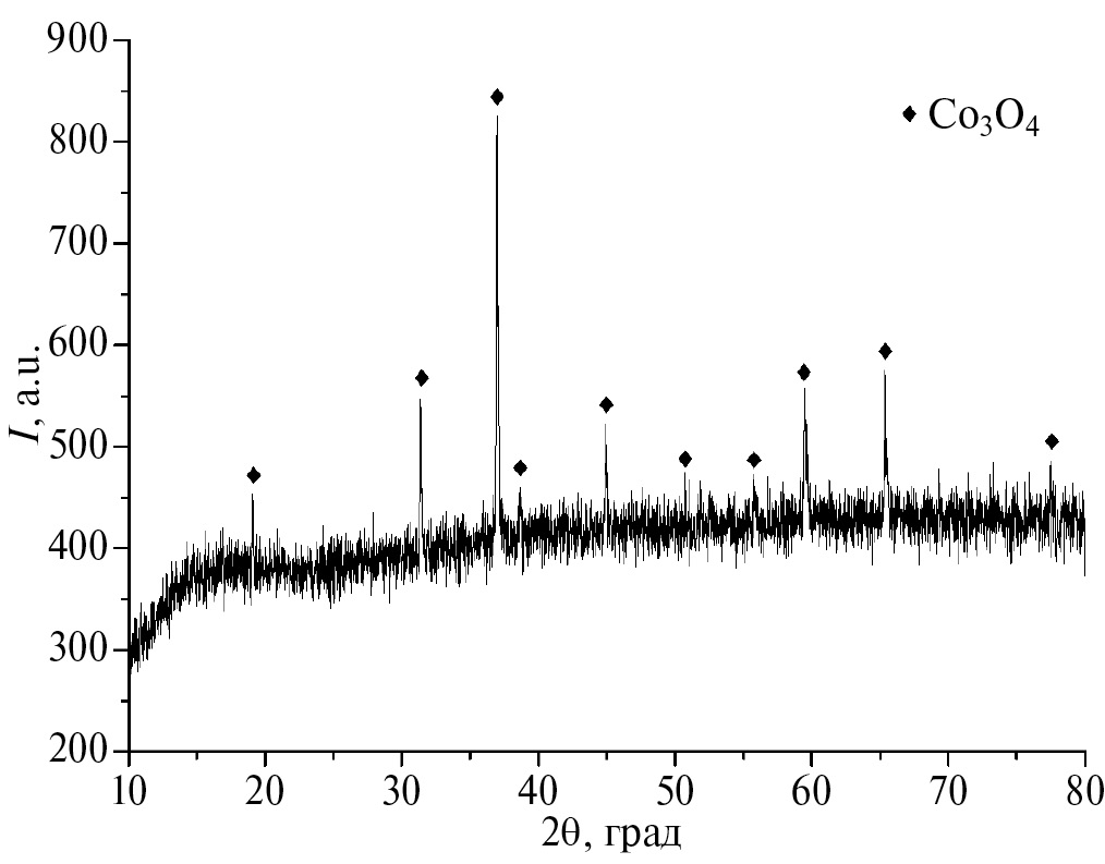 Среди оксидов переходных металлов особое значение для развития современных технологий имеет тетраоксид трикобальта, который обладает важным набором физико-химических свойств [8] и находит широкое применение при получении и переработке материалов катодов литий-ионных батарей [9, 10], суперконденсаторов [11], сенсоров [12], а также в качестве катализатора реакции выделения водорода в водородной энергетике [13].