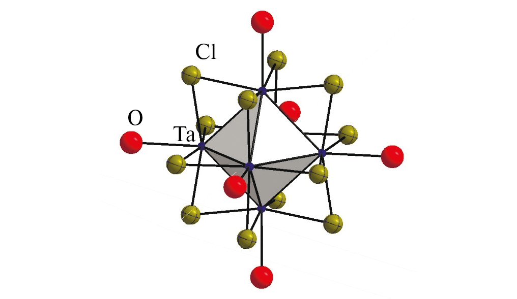Ниобий и тантал в низких степенях окисления проявляют сильную тенденцию к образованию соединений со связями металл–металл (кластеров) [1]. Особенно многочисленно семейство октаэдрических галогенидных кластеров {M6(µ2-X)12}n+ (M = Nb, Ta; X = F, Cl, Br, I; n = 2, 3, 4). В них, помимо мостиковых атомов галогена, каждый атом металла кластерного ядра дополнительно координируется одним терминальным лигандом, что приводит к образованию кластерных комплексов типа [{M6X12}L6] (рис. 1).