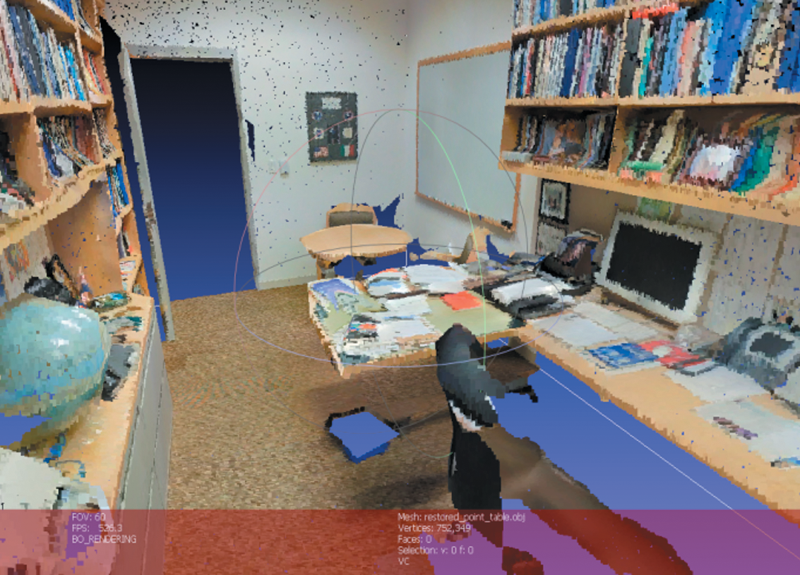 interaction with virtual objects in the real world. Like any promising direction, mixed reality has a number of unresolved problems. One of these problems is the synthesis of natural lighting conditions for virtual objects, including the correct light interaction of virtual objects with the real world. Since virtual and real objects are located in different spaces, it is difficult to ensure their correct interaction. To create digital copies of realworld objects, machine learning tools and neural network technologies are employed. These methods are successfully used in computer vision for space orientation and environment reconstruction. As a solution, it is proposed to transfer all objects into the same information space: virtual space. This makes it possible to solve most of the problems associated with visual discomfort caused by the unnatural light interaction of real and virtual objects. Thus, the basic idea of the method is to recognize physical objects from point clouds and replace these objects with virtual CAD models. In other words, it implies semantic analysis of a scene and classification of objects with their subsequent transformation into polygonal models. In this study, we use competitive neural network architectures, which can provide state-of-the-art results. The test experiments are carried out on Semantic3D, ScanNet, and S3DIS, which are currently the largest datasets with point clouds that represent indoor scenes. For semantic segmentation and classification of 3D point clouds, we use the PointNeXt architecture based on PointNet, as well as modern methods of data augmentation in the process of learning. For geometry reconstruction, the Soft Rasterizer differentiable rendering method and the Total3Understanding neural network are considered.