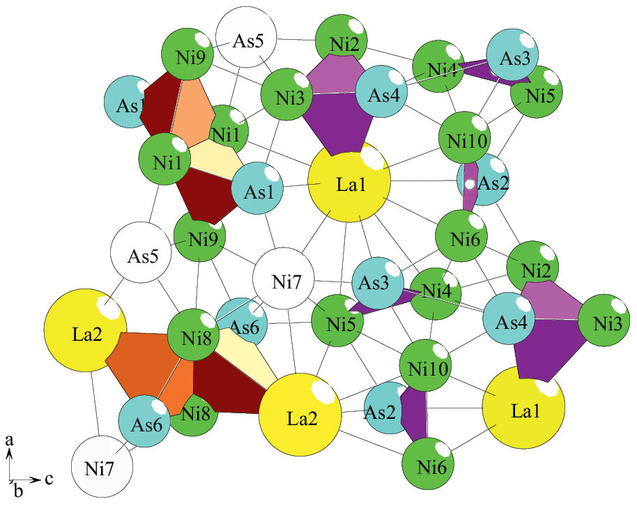 Таблица 2. La8Ni40As24–oP72. Координационные последовательности и локальное окружение атомов в кристаллической структуре