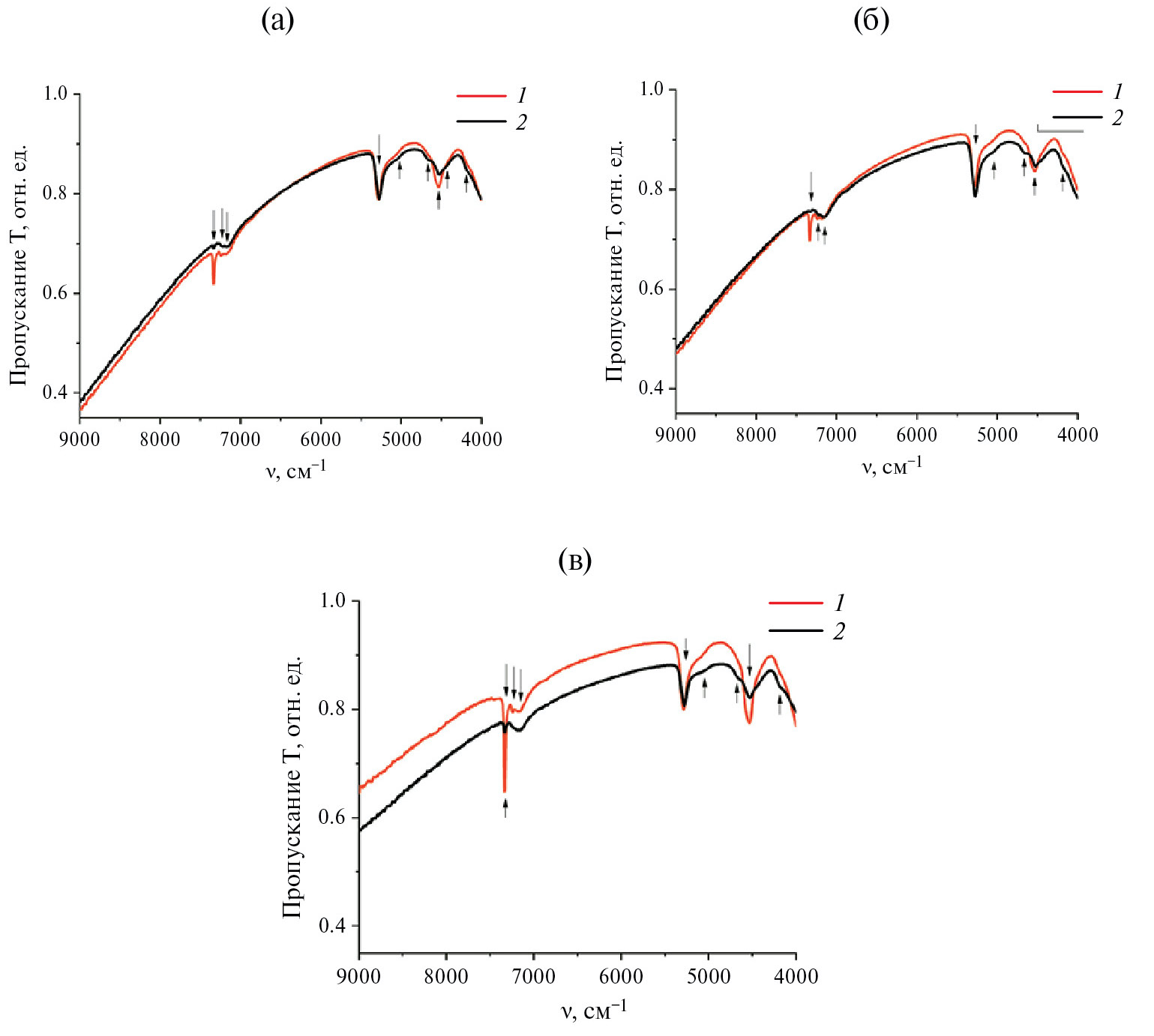 Исследования пропускания КМ методом ближней ИК спектроскопии выполнены с помощью ИК Фурье-спектрометра ФСМ-2211 («ИНФРАСПЕК», Россия) в области частот 11000–4000 см–1 со спектральным разрешением 2 см–1.