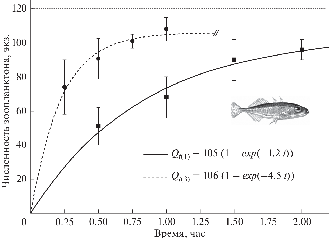 Динамика потребления зоопланктона трехиглой колюшкой Gasterosteus aculeatus (Linnaeus, 1758) при разной плотности популяции хищника