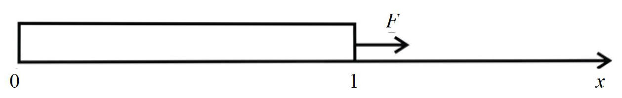 Рис. 1. Упругий стержень, движущийся в условиях внезапно приложенной силы, направленной вдоль его оси