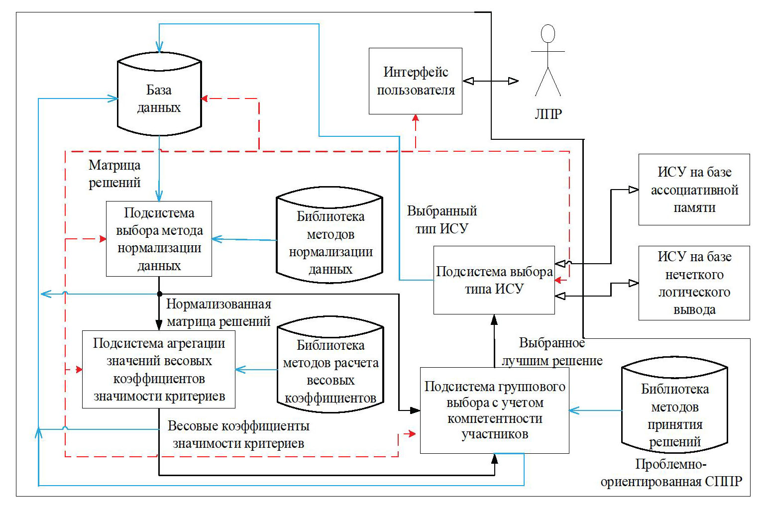 Архитектура проблемно-ориентированной СППР, которая состоит из нескольких взаимодействующих подсистем, показана на рис. 2.