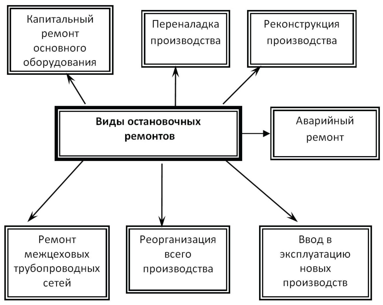 При анализе различных ремонтных работ на таких производственных объектах можно выделить несколько основных видов, которые останавливают производство (рис. 1):