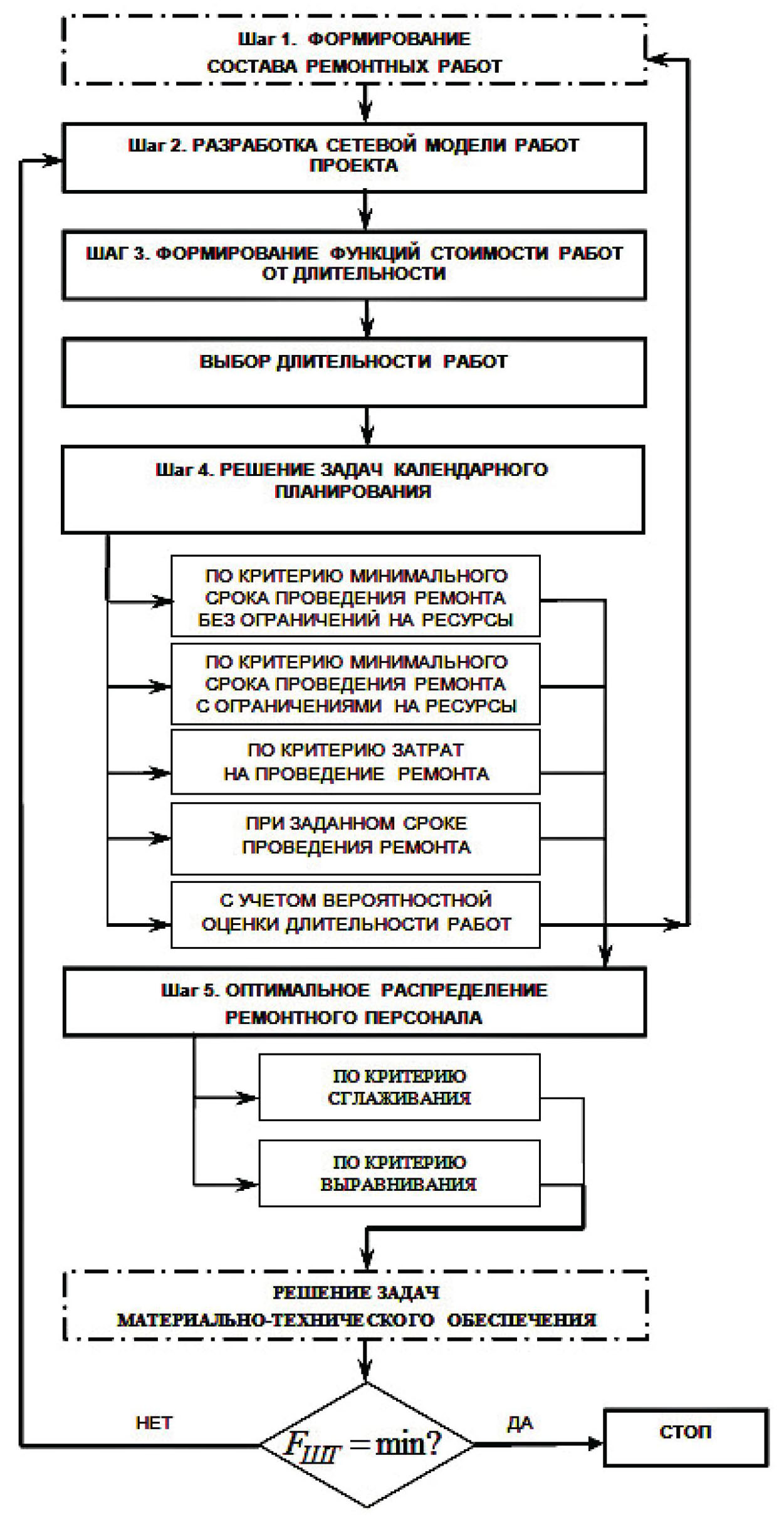 Каждый шаг вносит свой вклад в решение общей задачи планирования остановочных ремонтов. Итерационная схема решения этой задачи представлена на рис. 3.