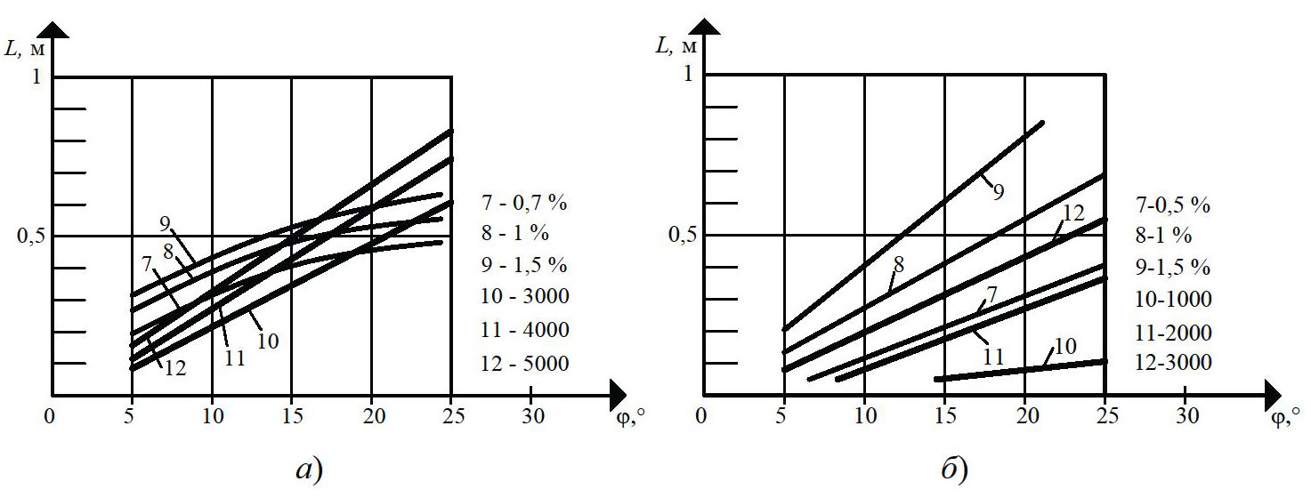 Суммарный сдвиг в каналах шнека γш в большей степени зависит от длины нарезки червяка L, чем от угла наклона нарезки j (см. рис. 8). Причем, чем больше длина нарезки червяка L (на 33 %), тем больше суммарный сдвиг в каналах шнека γш (на 40 %), что связано с увеличением времени пребывания резиновой смеси в материальном цилиндре. Чем больше угол наклона нарезки j (на 33 %), тем меньше суммарный сдвиг в каналах шнека γш (на 33 %) как для изотермического, так и неизотермического режимов экструзии резиновых смесей.