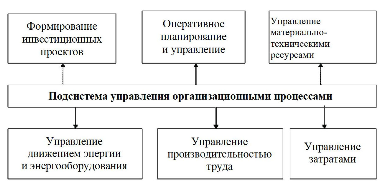 – управления материально-техническими ресурсами, потоками энергии, энергооборудованием, затратами и производительностью труда.