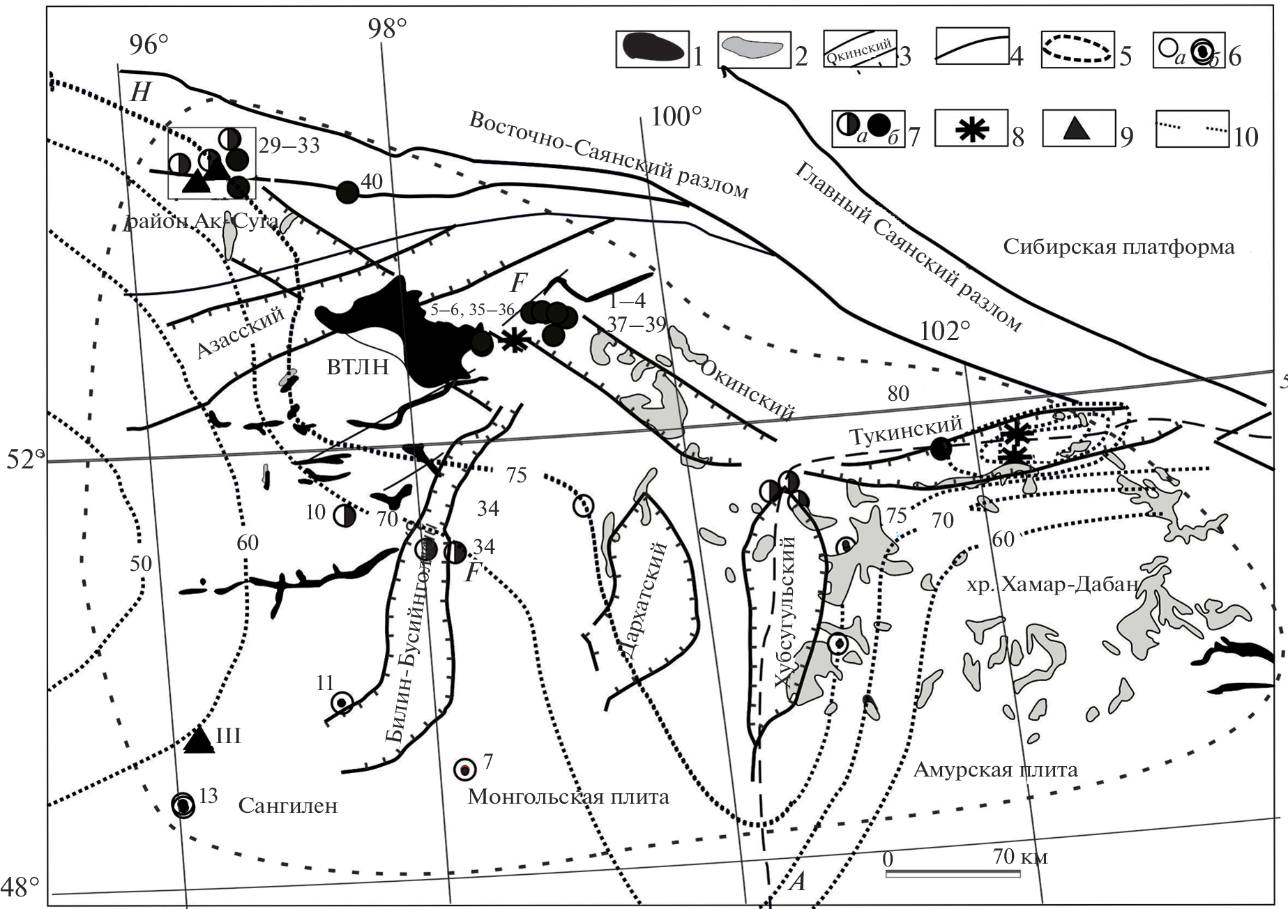 - Ярмолюк В.В., Иванов В.Г., Коваленко В.И., Покровский Б.Г. Магматизм и геодинамика Южно-Байкальской вулканической области (горячей точки мантии) по результатам геохронологических, геохимических и изотопных (Sr, Nd, O) исследований // Петрология. 2003. Т. 11. № 1. С. 3–33.