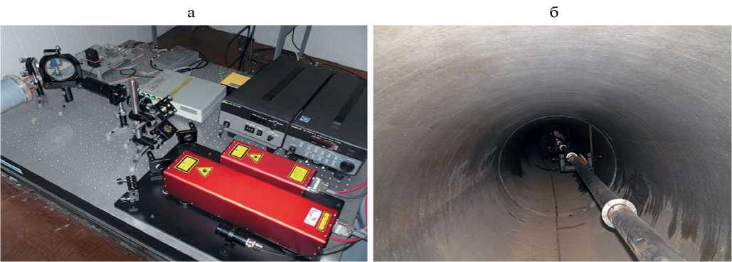 а – центральный интерференционный узел лазерного деформографа; б – подземный трубопровод с ваккумированной трубой.