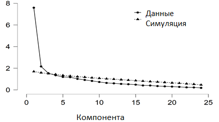 При решении вопроса о количестве выделяемых компонент использовался критерий отсеивания Кэттелла (рис. 1).
