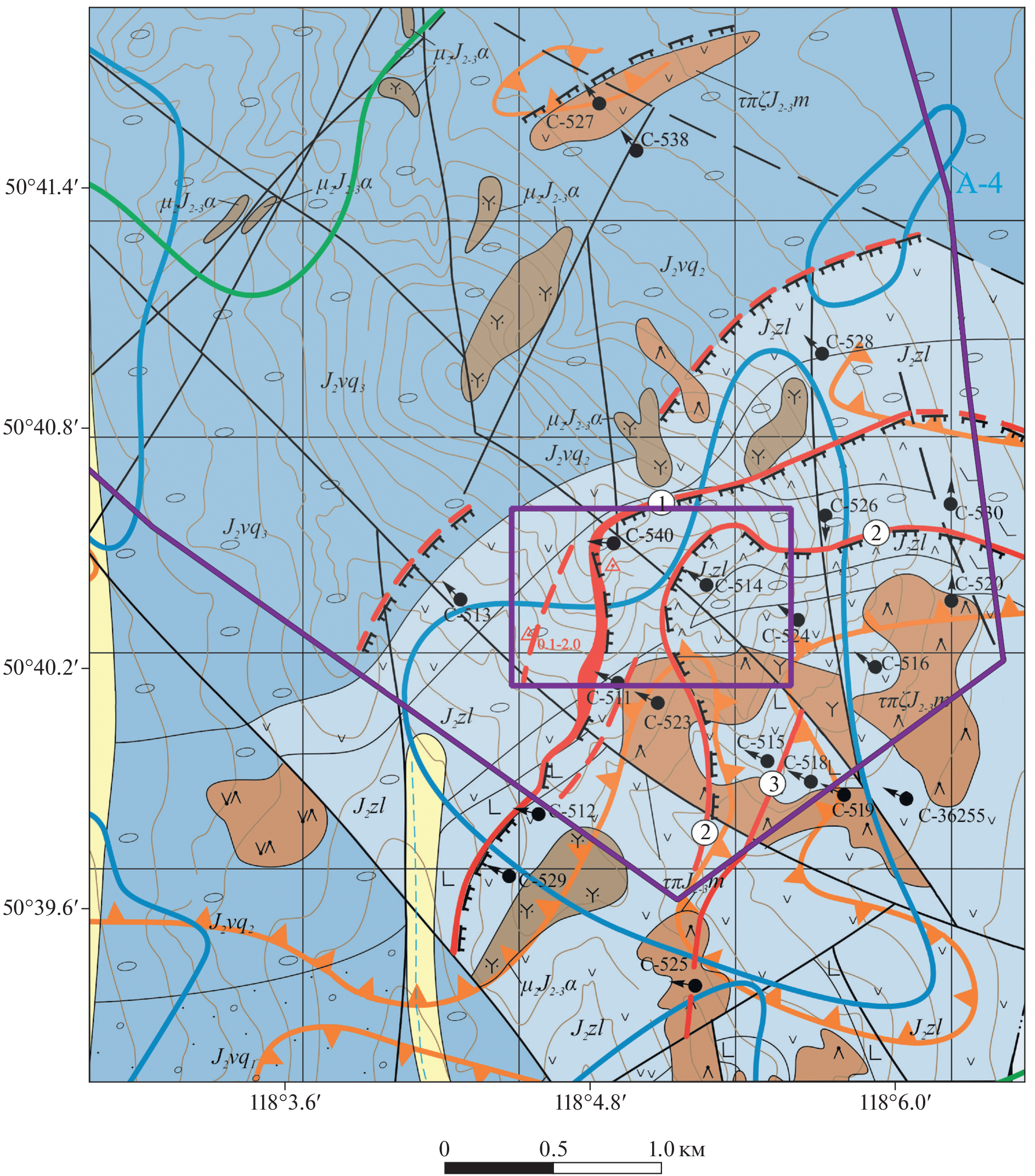The work is aimed at the practical application of satellite imagery data for the selection of promising areas for geological exploration in conditions of medium-low mountain relief and a sharply continental climate. The results of processing and analysis of WorldView-2 data within the Talmanskaya area are presented in order to identify zones of hydrothermal-metasomatic changes in rocks that are promising for the identification of gold-polymetallic mineralization. The choice of the study area is due to sufficient geological knowledge and the absence of technogenic formations that affect the result of processing satellite imagery materials. To increase the spectral information content of the WorldView-2 data, the spectral channel ratio method was used, as a result of which a pseudo-color RGB composite was created that displays the spectral characteristics of objects on the Earth’s day surface, in particular, minerals of the oxide/hydroxide group containing transitional iron ions (Fe3+ and Fe3+/Fe2+). Comparison of the results of processing satellite data along with geological information made it possible to identify spectral anomalies as indicators of the presence of near-ore changes, which are an important search criterion for hydrothermal deposits.