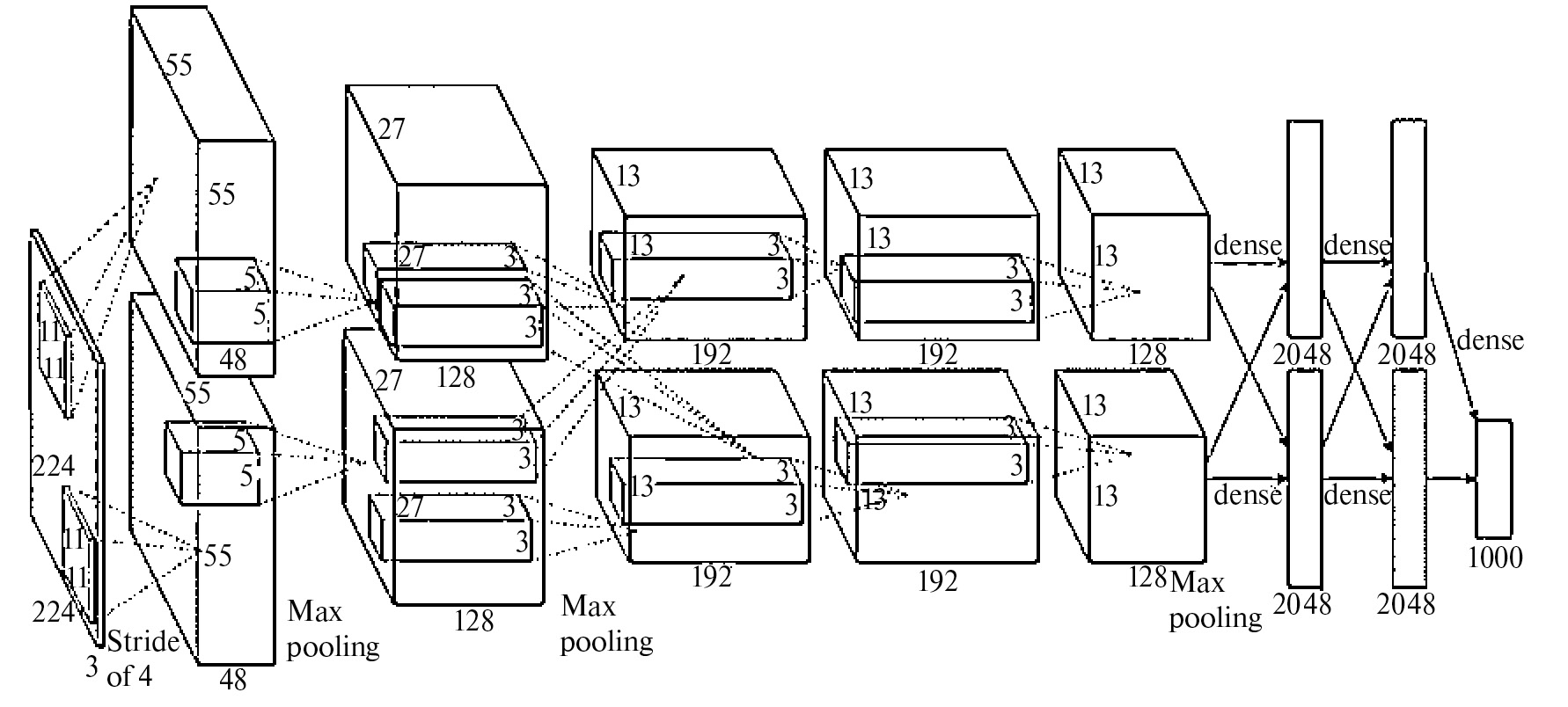 Рис. 2. Архитектура нейронной сети AlexNet.