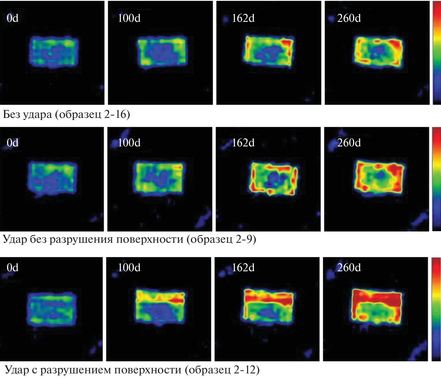 in the samples and a significant accumulation of free water in the areas of destruction and adjacent layers in
