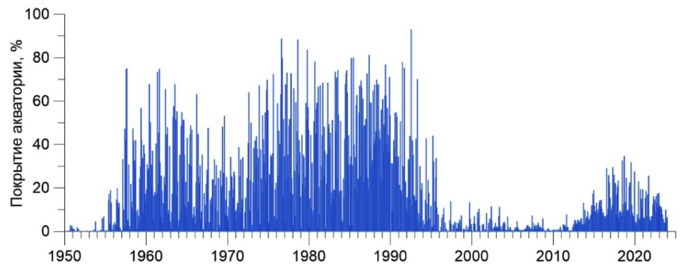 Для нового климатического массива (МГИ-2024) был выбран период 1950‒2023 гг., который охватывает два климатических периода Всемирной метеорологической организации (ВМО): 1961‒1990 гг. и 1991‒2020 гг., а также близок к периодам количественных оценок долгопериодных изменений в Мировом океане из отчета Межправительственной группы экспертов по изменению климата (МГЭИК) 6.