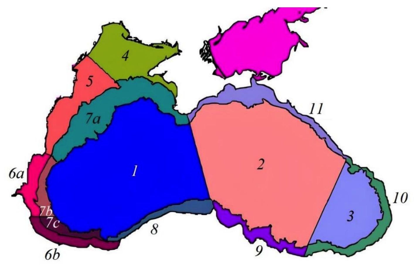 Fig. 1. Map of the Black Sea sub-regions defined by hydrodynamic features [33]