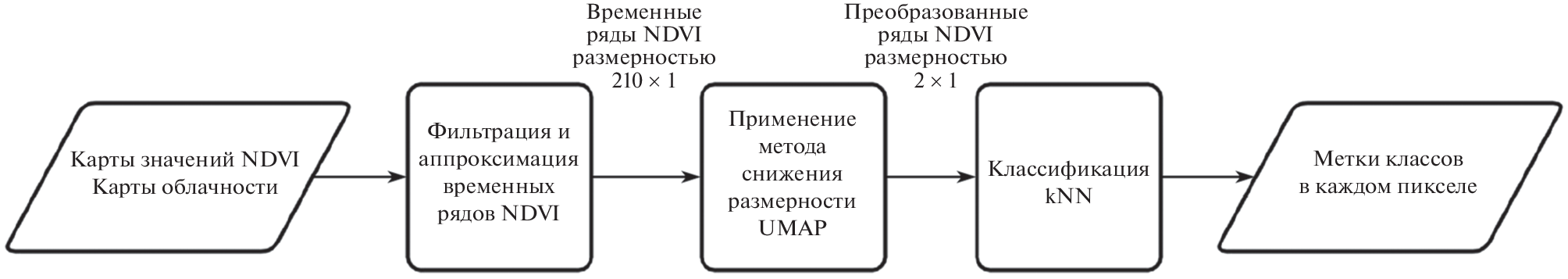 - Vorob’eva N.S., Chernov A.V. Approksimatsiya vremennykh ryadov NDVI v zadache rannego raspoznavaniya vidov sel’skokhozyaistvennykh kul’tur po kosmicheskim snimkam [Approximation of NDVI time series in the problem of early recognition of crop species from satellite images]. Sbornik trudov III mezhdunarodnoi konferentsii i molodezhnoi shkoly “Informatsionnye tekhnologii i nanotekhnologii” (ITNT-2017)-Samara: Novaya tekhnika [Proceedings of the III International Conference and Youth School “Information Technology and Nanotechnology” (ITNT-2017) – Samara: New technology]. Samara. 2017. P. 390–399 (in Russian).